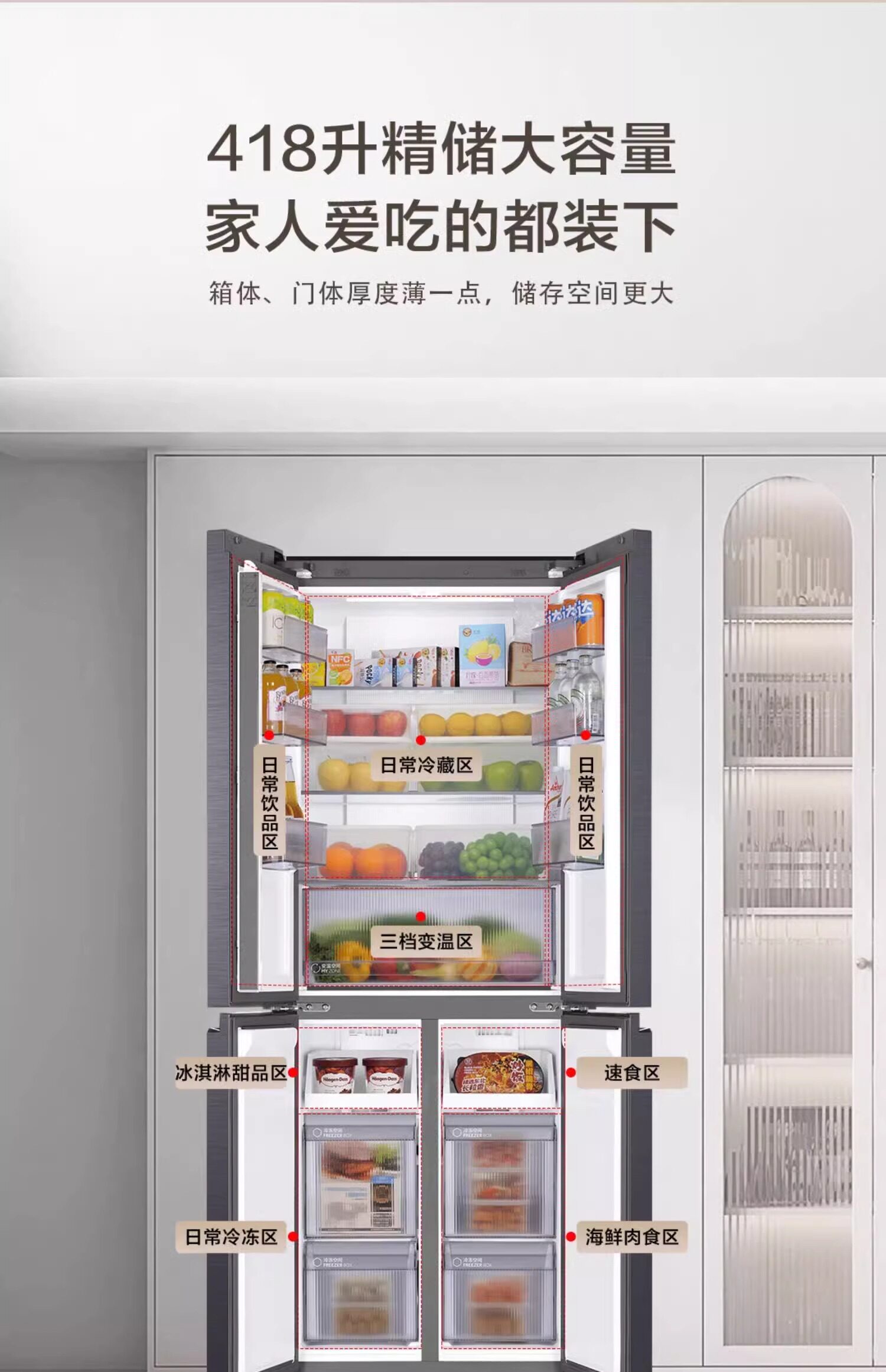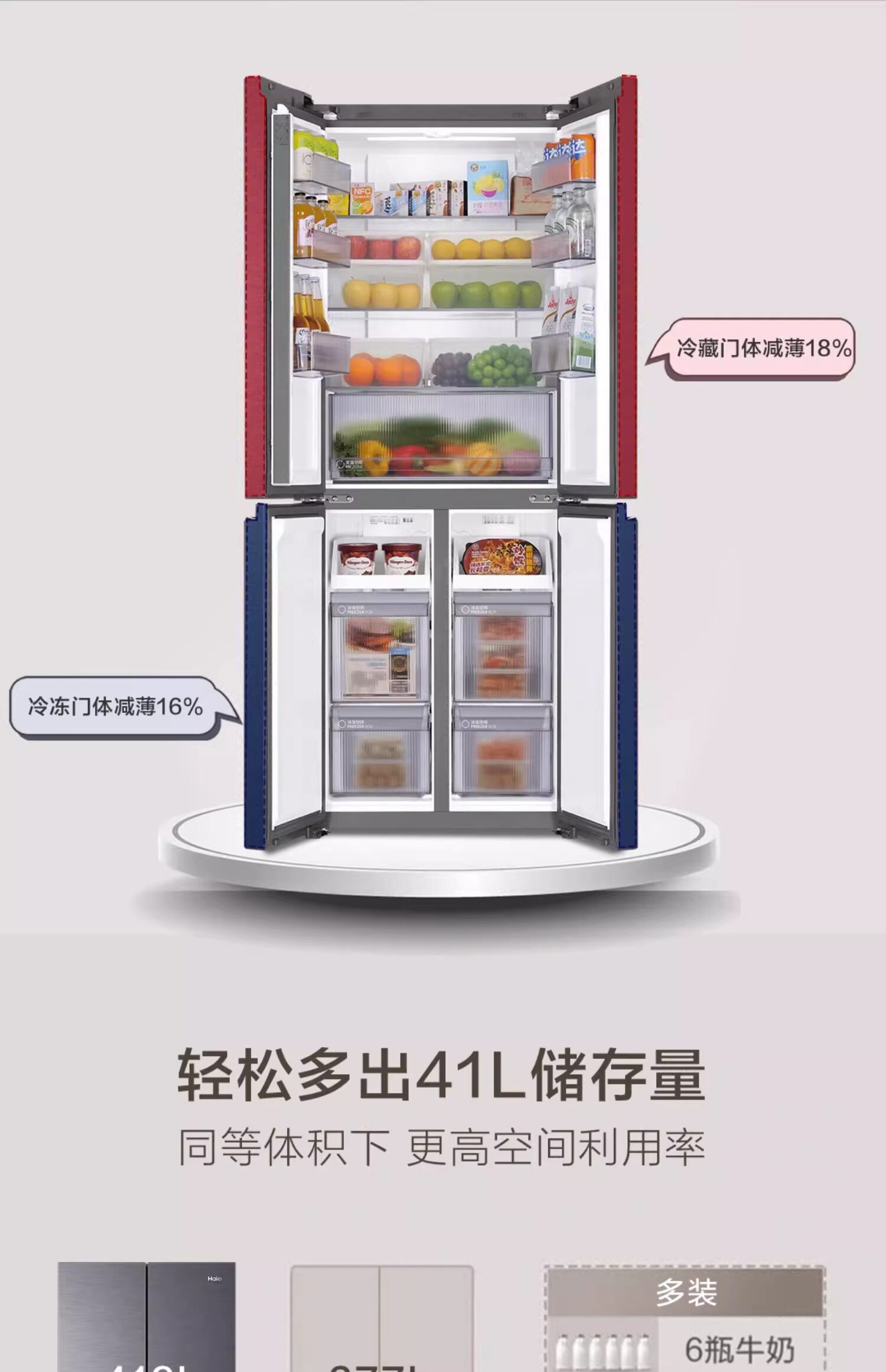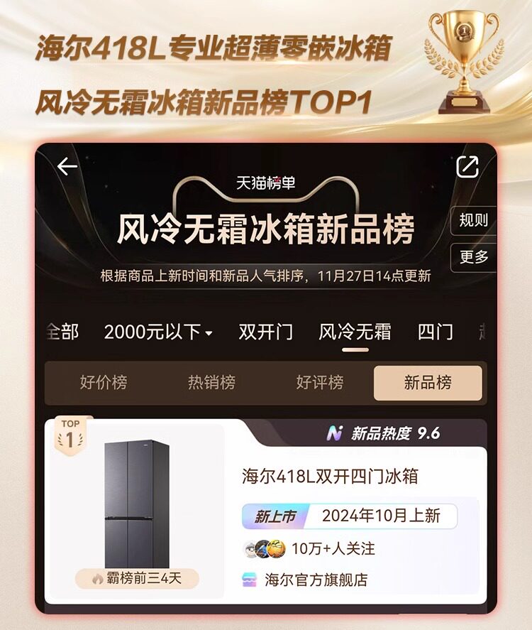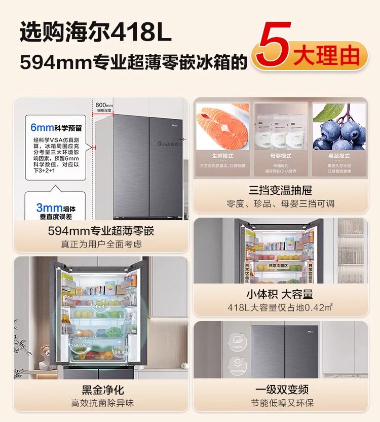 Haier 418L Cross Double Open 𫔭Off Zero Embedded Tủ lạnh Trang chủ Làm mát bằng không khí Frostless Lớp 1 Hiệu quả năng lượng siêu mỏng Double Inverter
