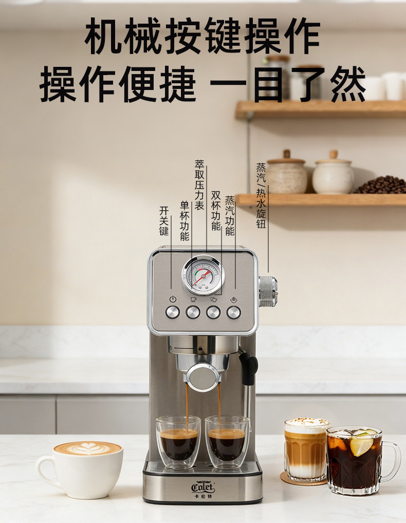 Máy pha cà phê đặc biệt Karen dùng loại nhỏ bán tự động chiết xuất hơi nước bằng thép không gỉ làm bong bóng sữa