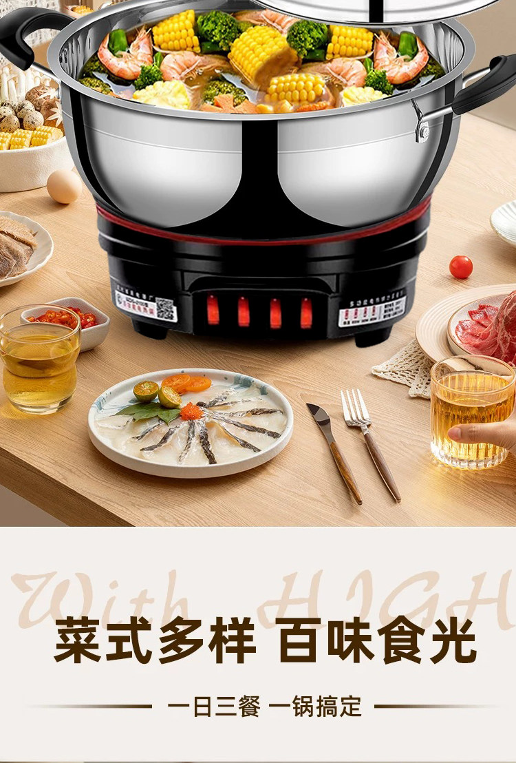 Nồi điện Wanlida đa chức năng Nồi xào điện gia dụng Một nồi điện bằng thép không gỉ công suất lớn Nồi hấp hầm