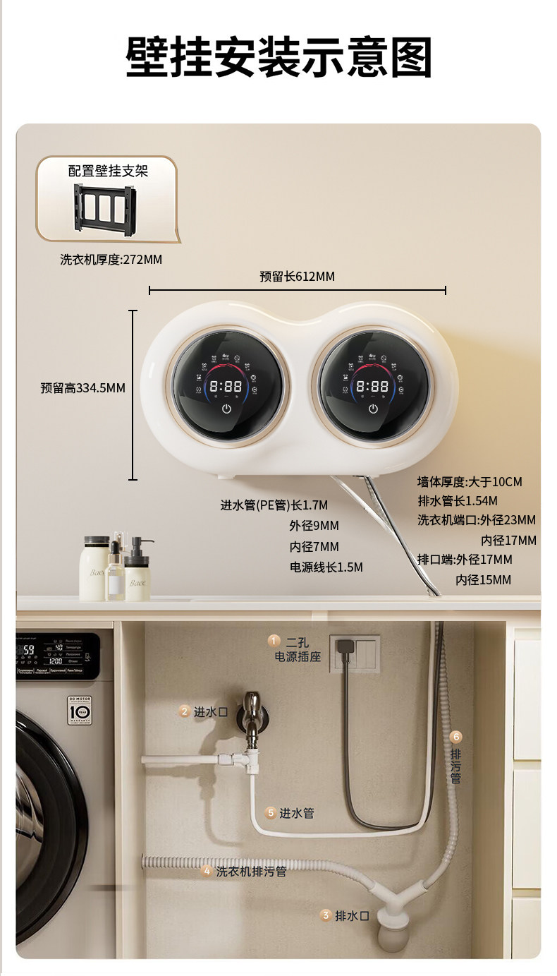 Hai khoang trống để rửa quần lót và vớ đặc biệt máy giặt mini giặt khô một máy giặt nhỏ hoàn toàn tự động gia đình tường treo