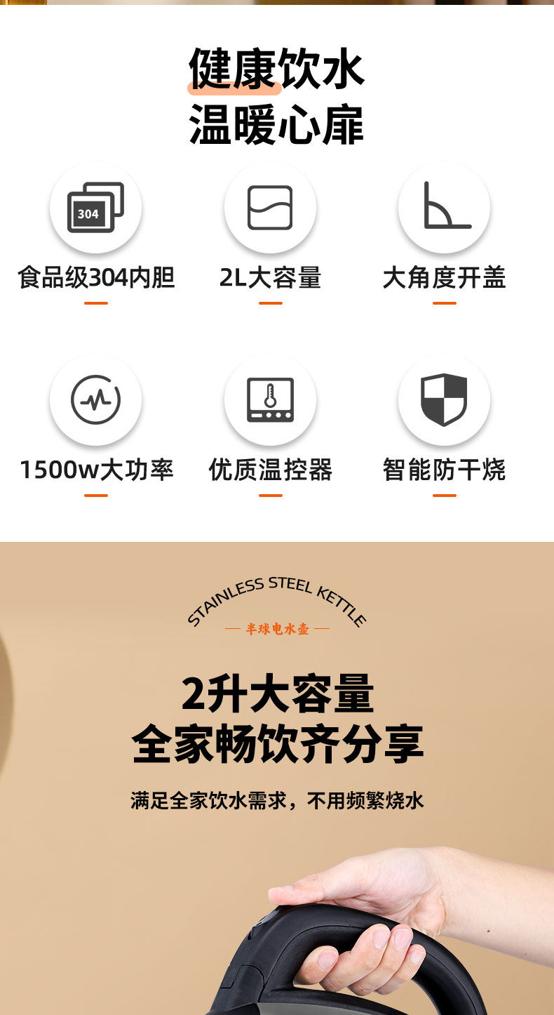 Bán cầu chính hãng đun sôi nước 304 thép không gỉ ấm đun nước điện cho gia đình công suất lớn mở ấm đun nước cách nhiệt một nồi nhanh