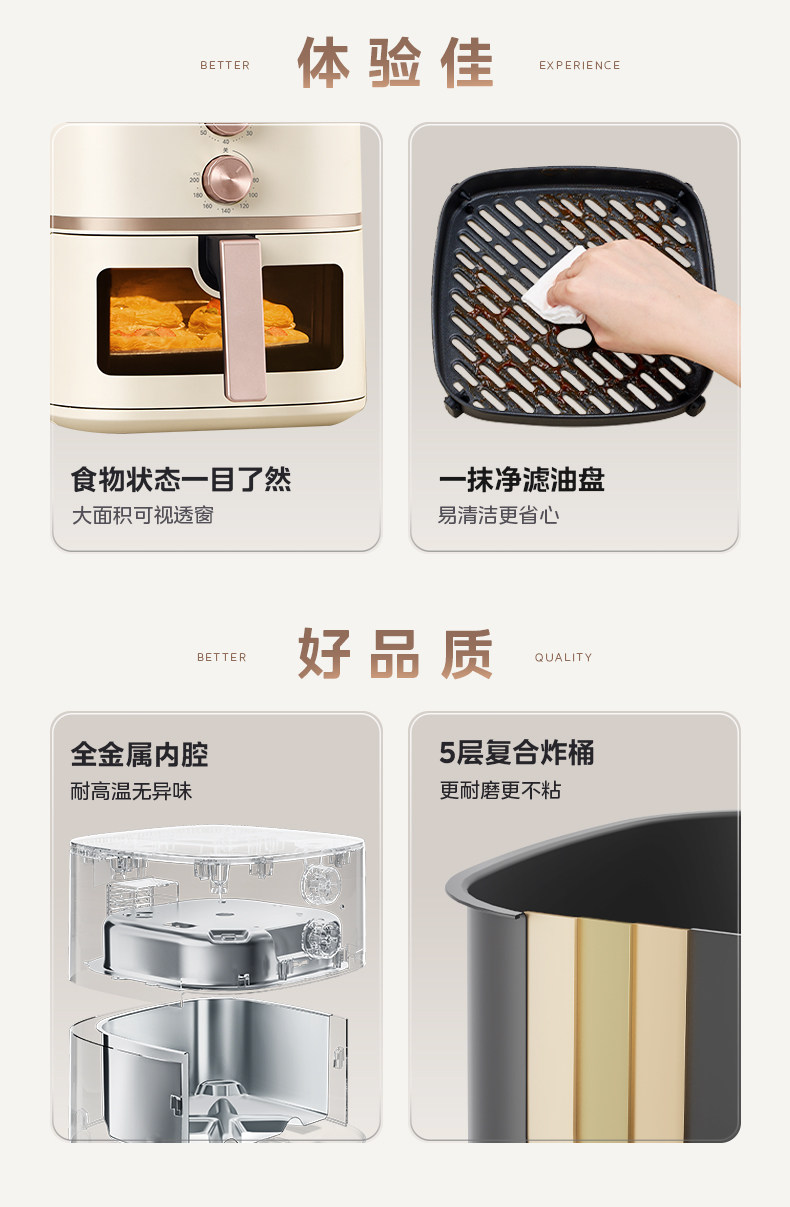 Nồi chiên không khí đẹp, lò nướng điện kiểu mới, nồi chiên điện kiểu mới, miễn lật mặt, có thể nhìn thấy dung lượng lớn, kiểu dáng mới của 2026.