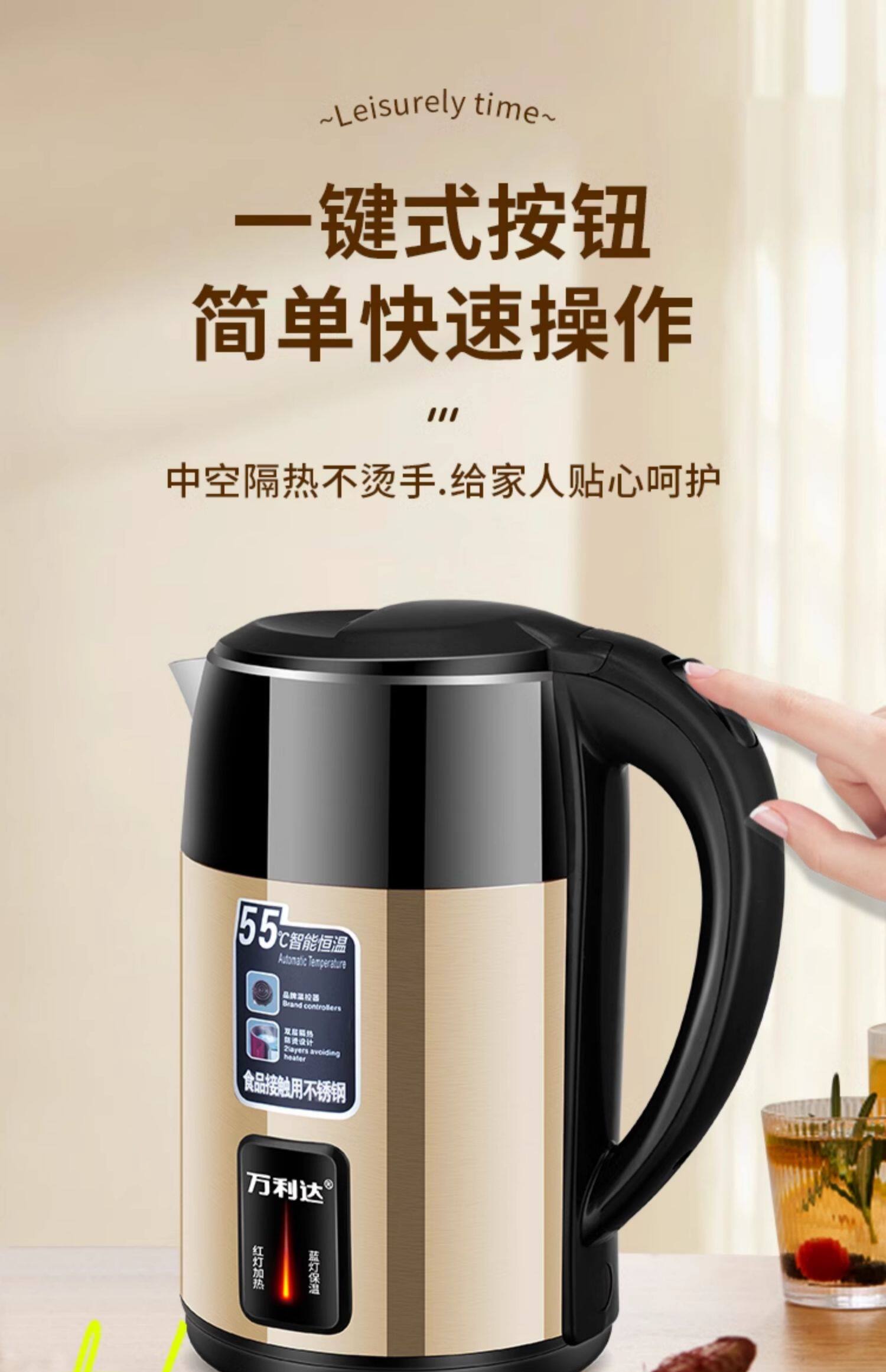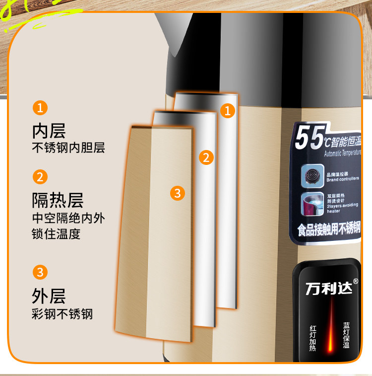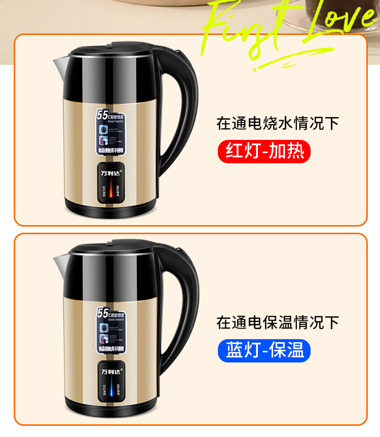 Wanlida ấm đun nước bền vững dày cách nhiệt ký túc xá ấm đun nước đun sôi lớn dung lượng ấm đun nước điện