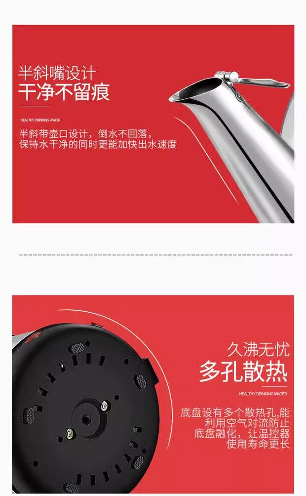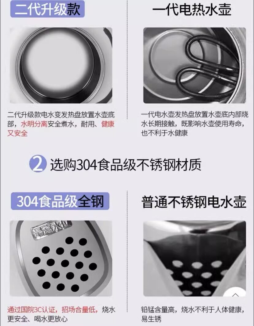 Ấm đun nước điện mới Công suất lớn Tự động tắt điện Ấm đun nước gia đình Ấm đun nước bằng thép không gỉ 316
