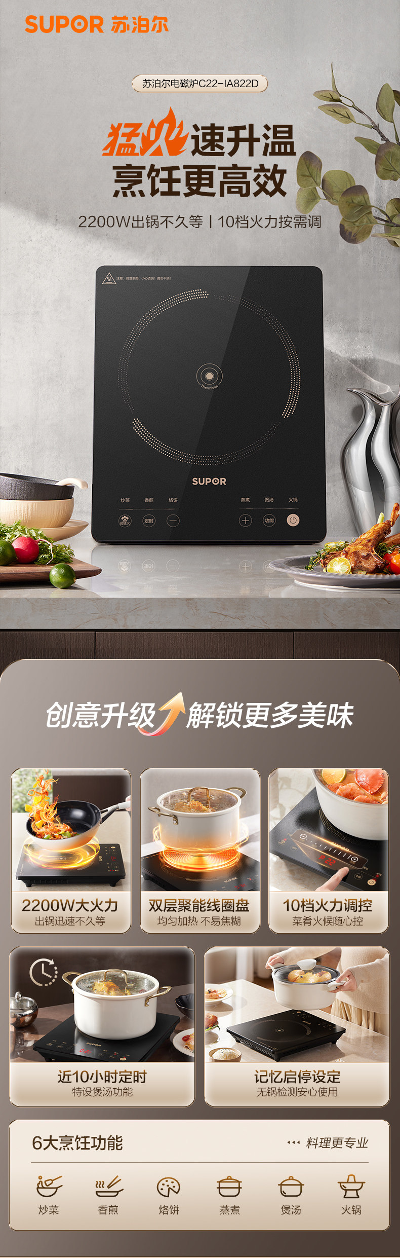 Bếp điện supor bếp điện nhà nấu lẩu nóng nồi với nhiều năng lượng chống mặc thời gian thông minh bếp điện