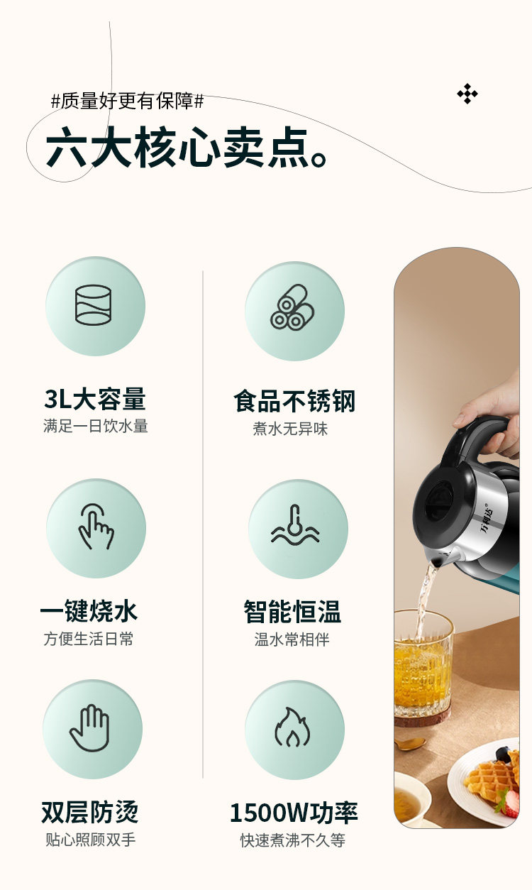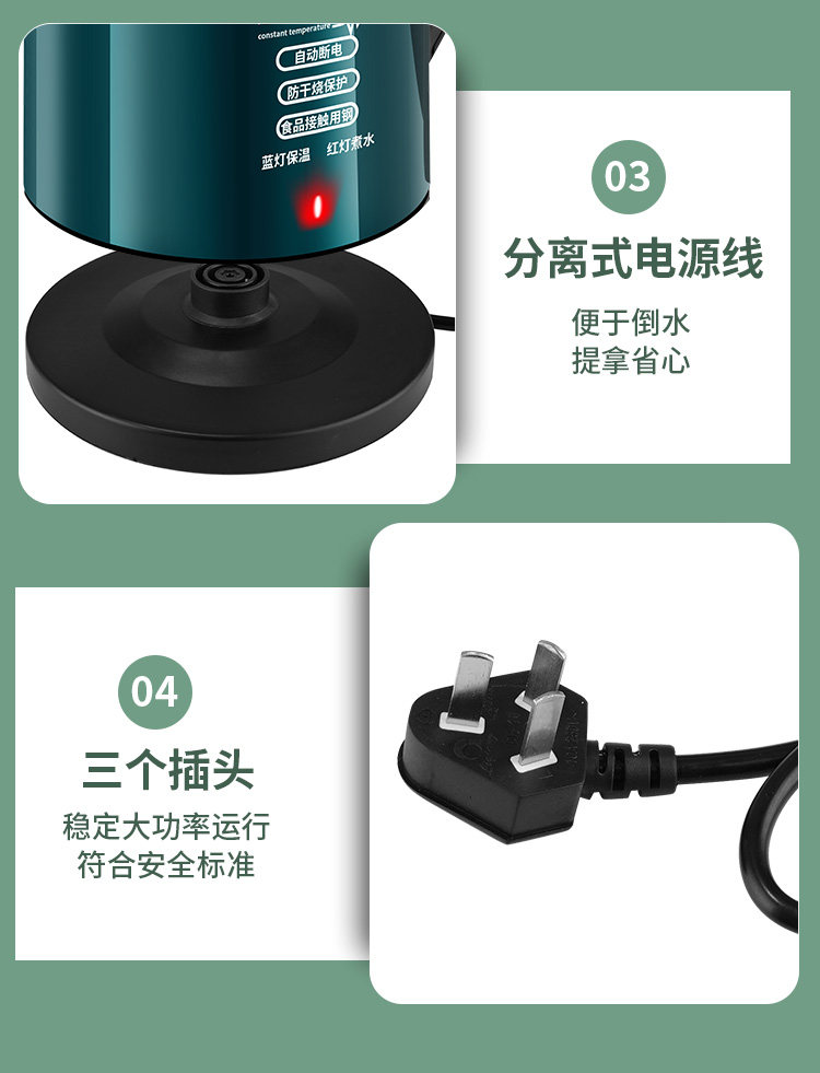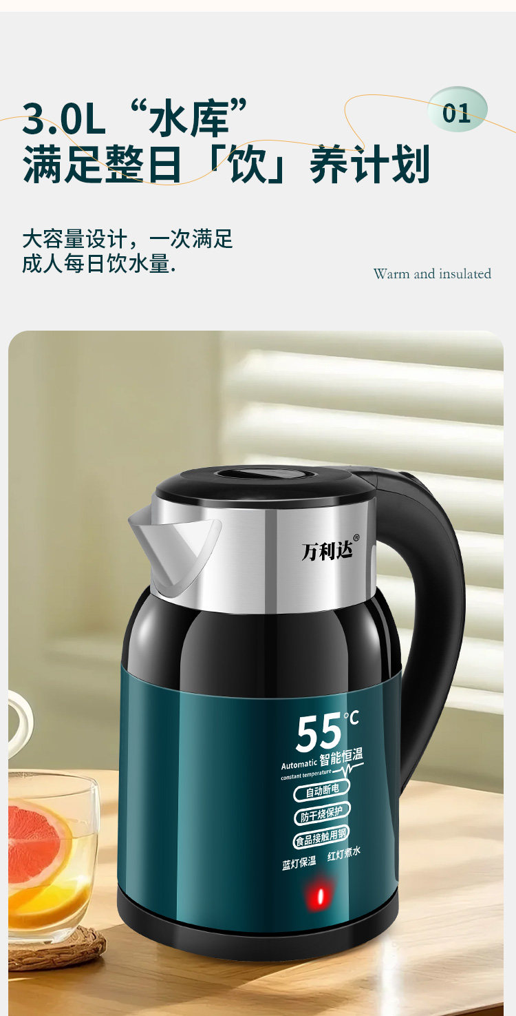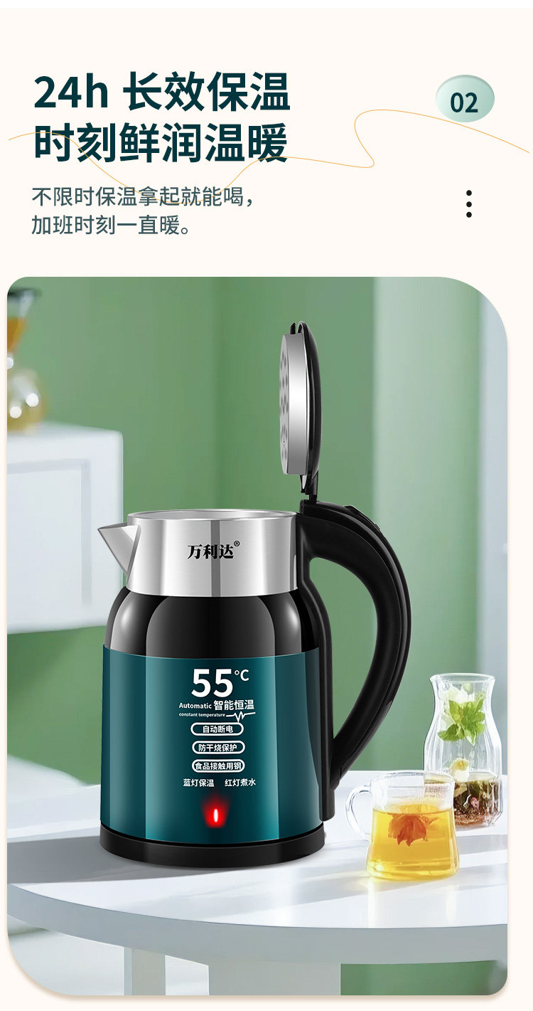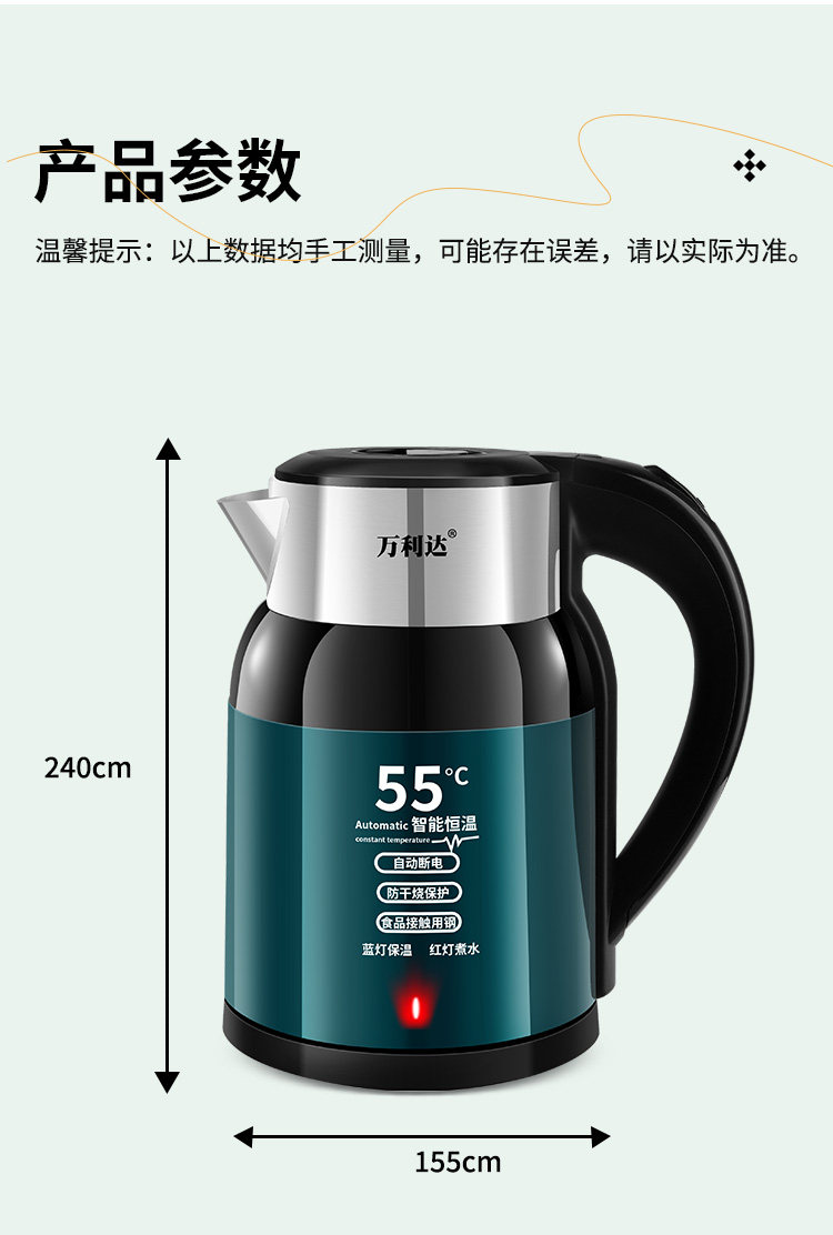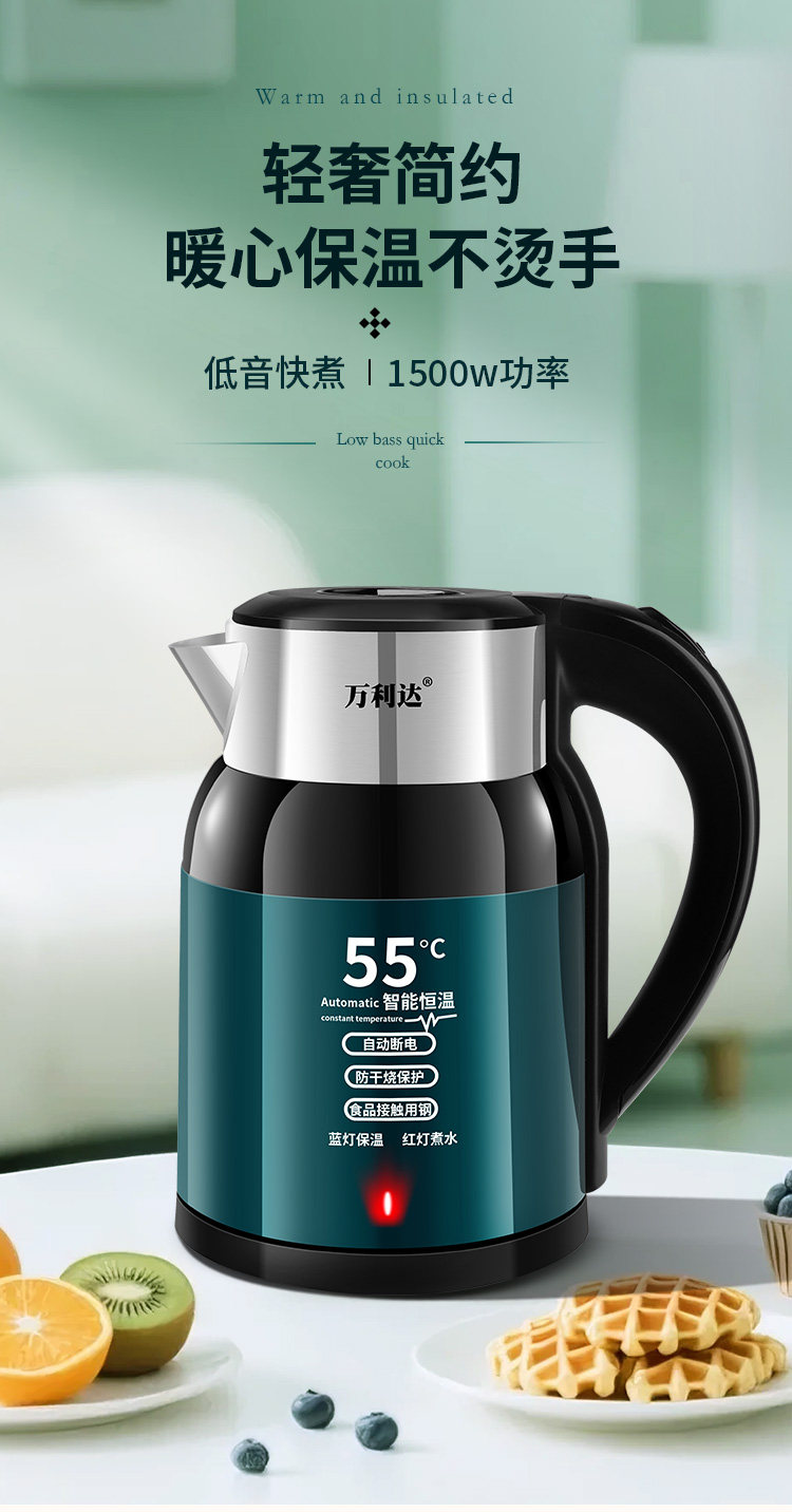 Wanli ấm đun nước điện dày bằng thép không gỉ tự động tắt ấm đun nước trong nhà nhiệt độ thông minh năng lượng đun sôi nhanh chóng