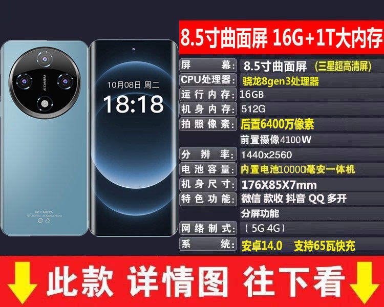 Chính hãng 8.9 inch màn hình 16+512G bộ nhớ netcom 5G siêu mỏng android smartphone màn hình lớn