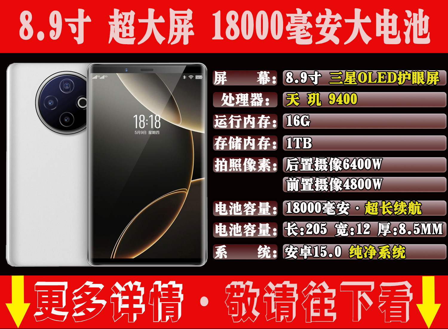 Màn hình lớn 8,9 inch, điện thoại thông minh, hoàn toàn mới, chưa mở niêm phong, máy cao cấp thương mại mới, 7 inch 8 inch trở lên.