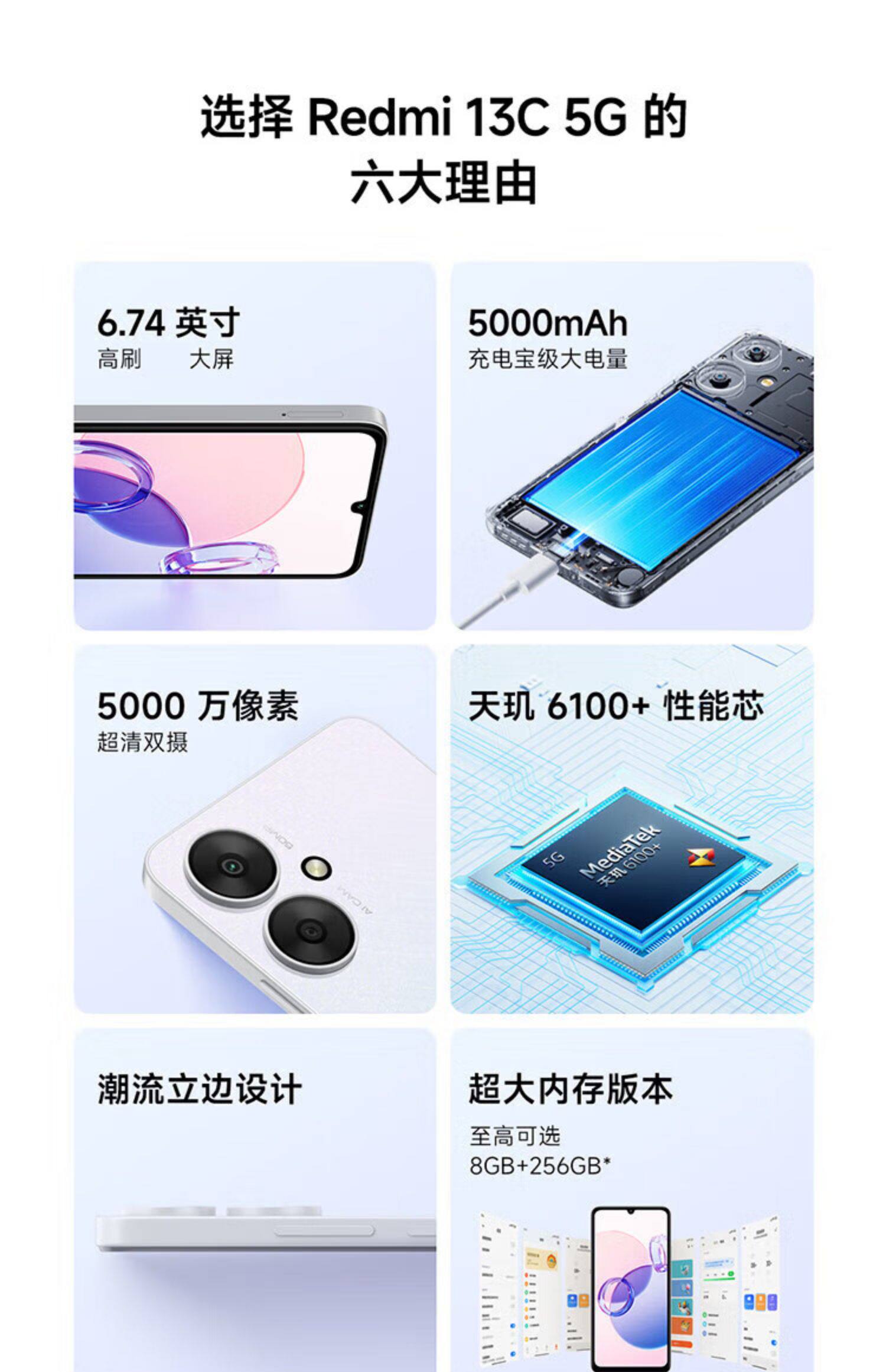 MIUI/ xiaomi Redmi 13C 5G toàn mạng thông minh học sinh chính thức dự phòng điện thoại màu đỏ gạo