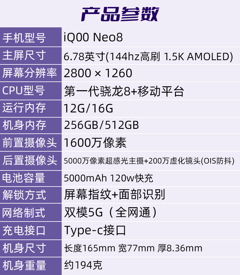 Vivo iQOO Neo8 Snapdragon 8+1.5k Màn hình cao IR Gaming Điện thoại thông minh sạc nhanh 5G