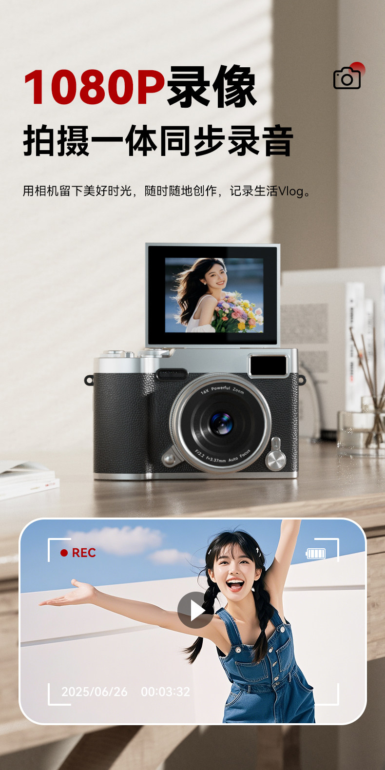 Máy ảnh mới 9600W máy ảnh chất lượng cao học sinh lật màn hình máy ảnh CCD học sinh trường nhỏ