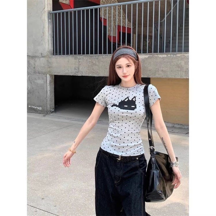 Hàn quốc vai trắng dễ thương mèo áo sơ mi ngắn tay mùa hè học viện mỏng ngắn tay áo áo sơ mi