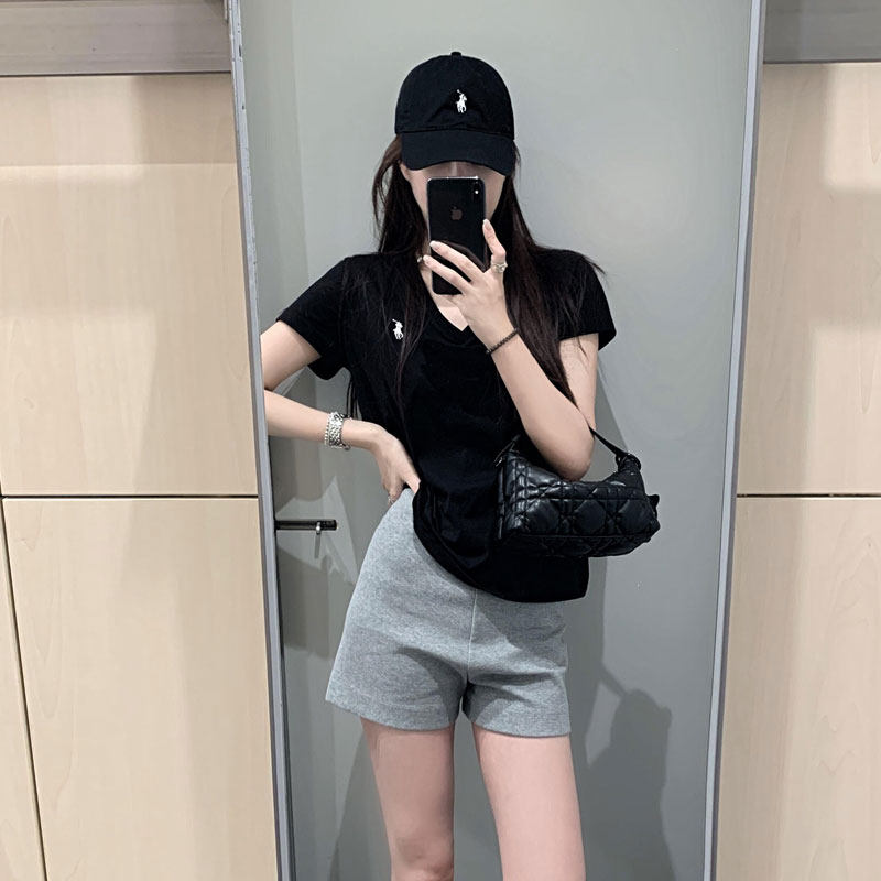 Straight Shoulder V-Neck ngắn tay áo T-shirt cho phụ nữ mùa hè độc đáo sang trọng lỏng lẻo lười biếng phong cách babes hiển thị gầy nửa tay áo T-shirt trên quần áo