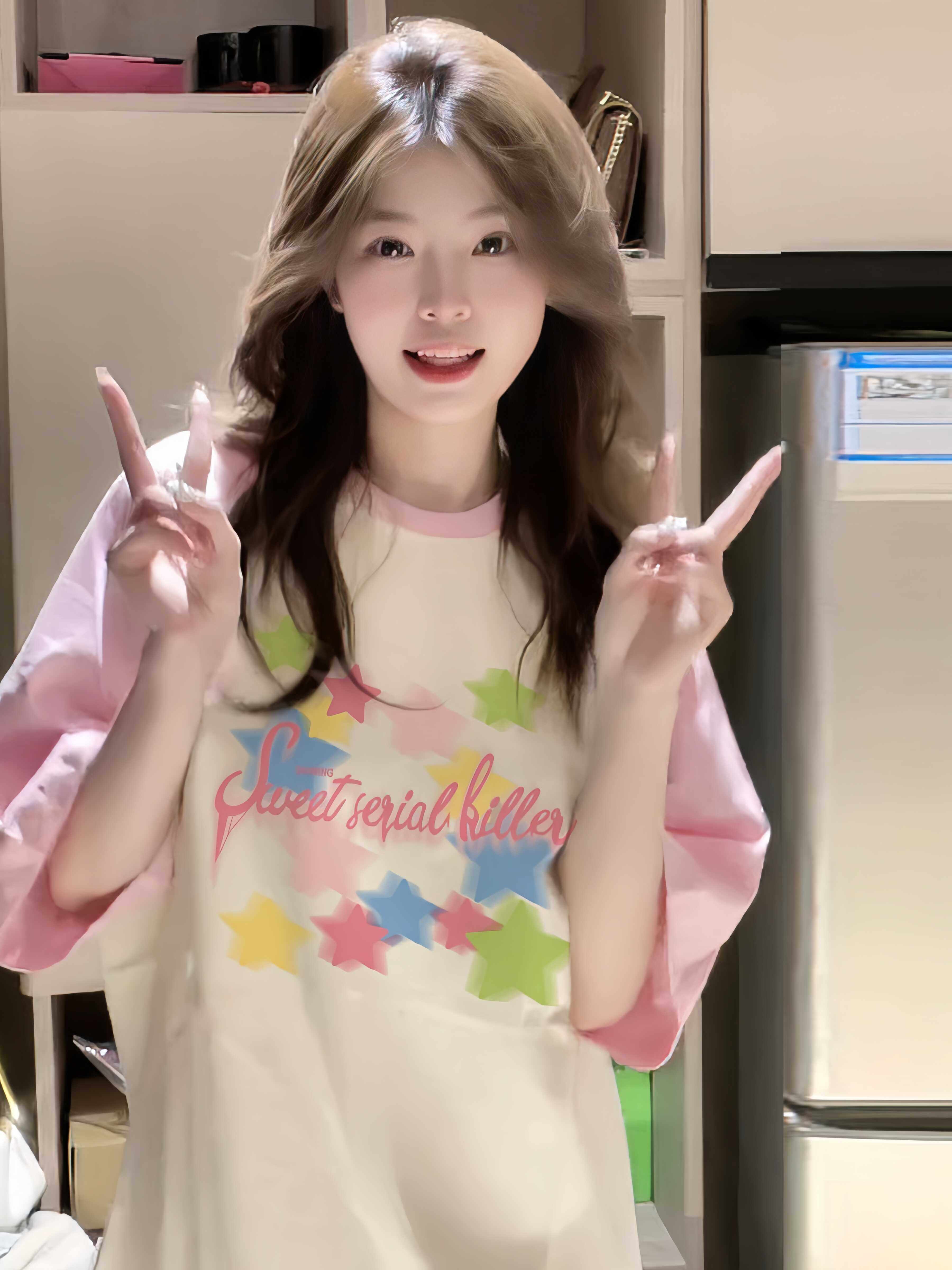 Dopamine mặc áo thun ngắn tay cho nữ 2025 Mẫu mới bùng nổ mùa hè trường trung học cơ sở học sinh trung học lỏng lẻo nửa tay áo