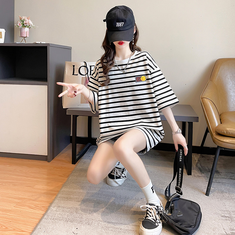 Bông áo sơ mi ngắn tay áo cỡ lớn của phụ nữ mùa hè năm 2025 sinh viên mũm mĩm chất béo mũm mĩm quần áo thời trang