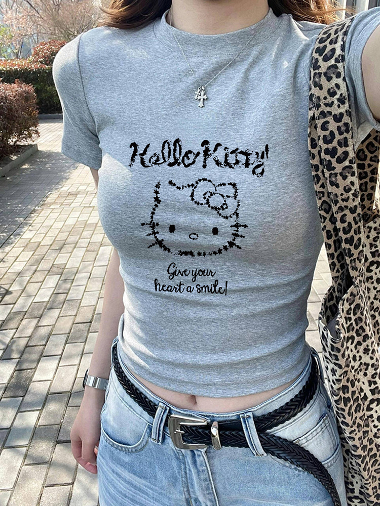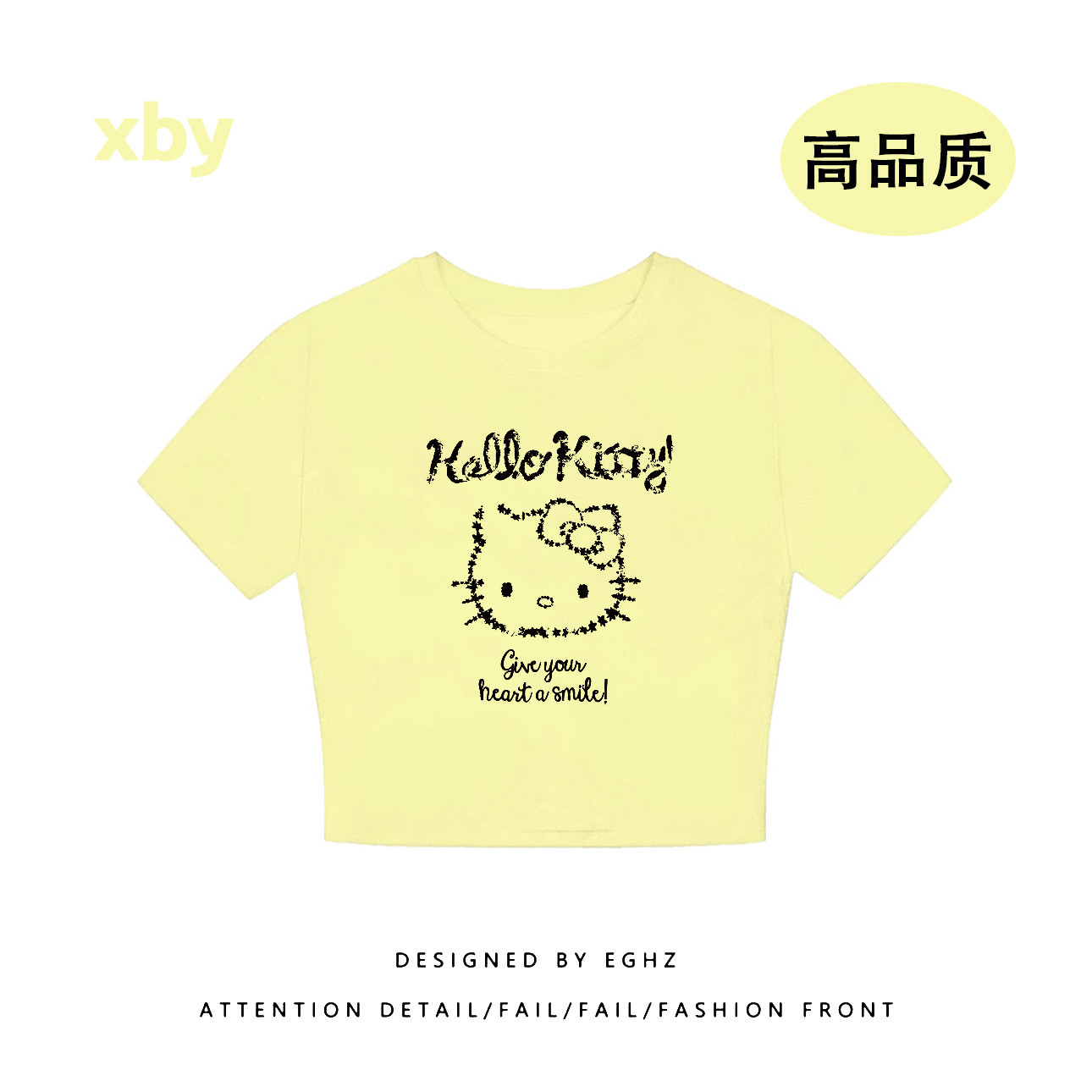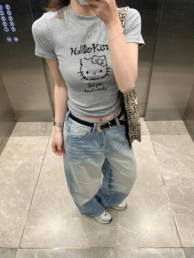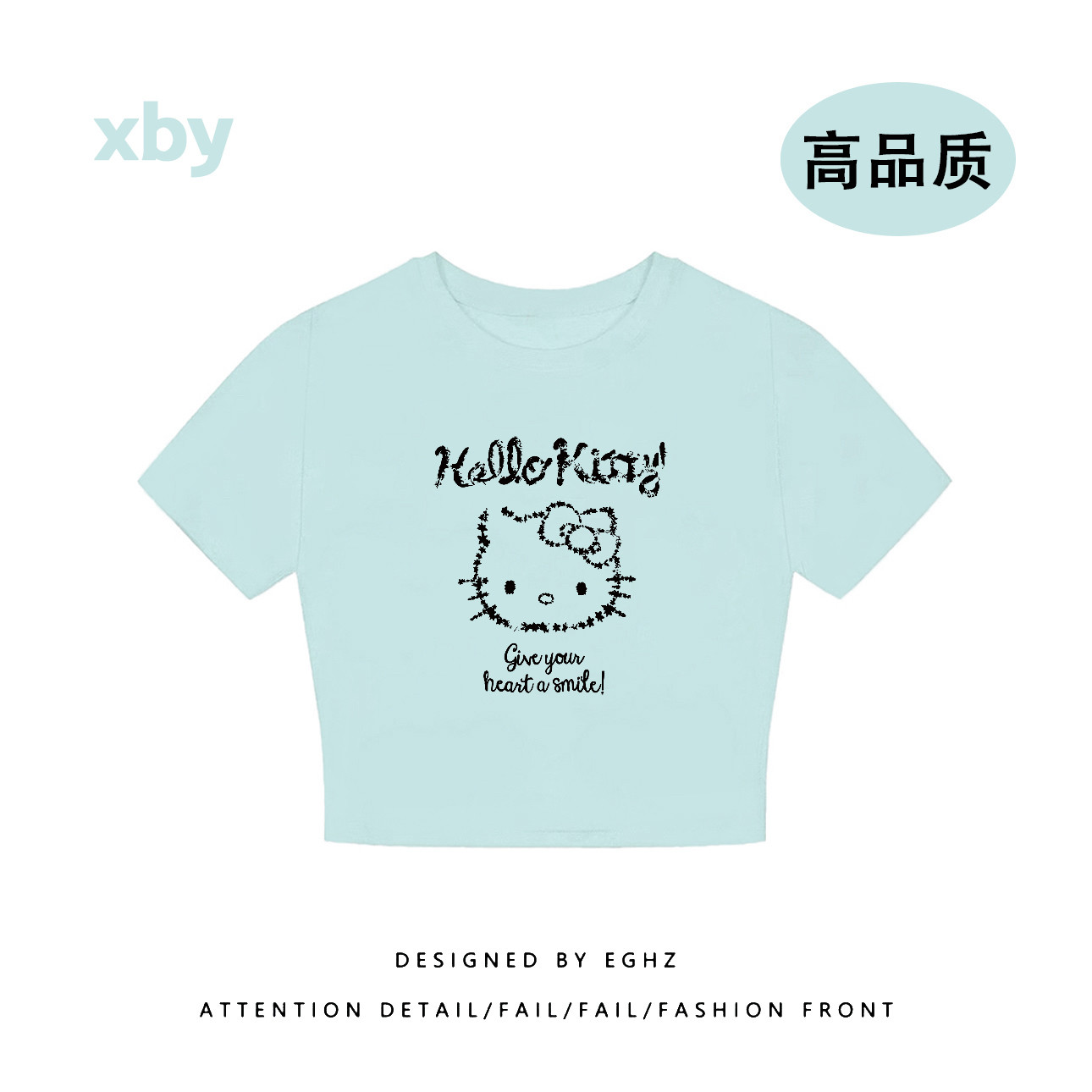 Mèo Kitty in áo sơ mi ngắn tay vai 2026 mùa hè mới slim bông ngắn áo sơ mi
