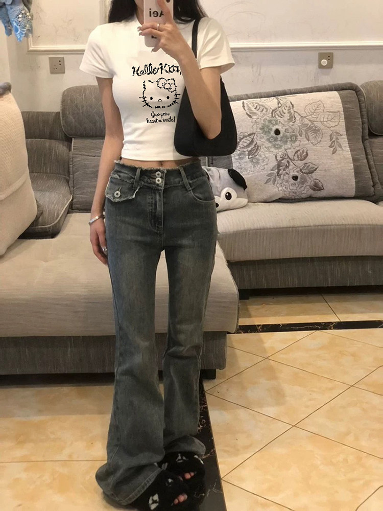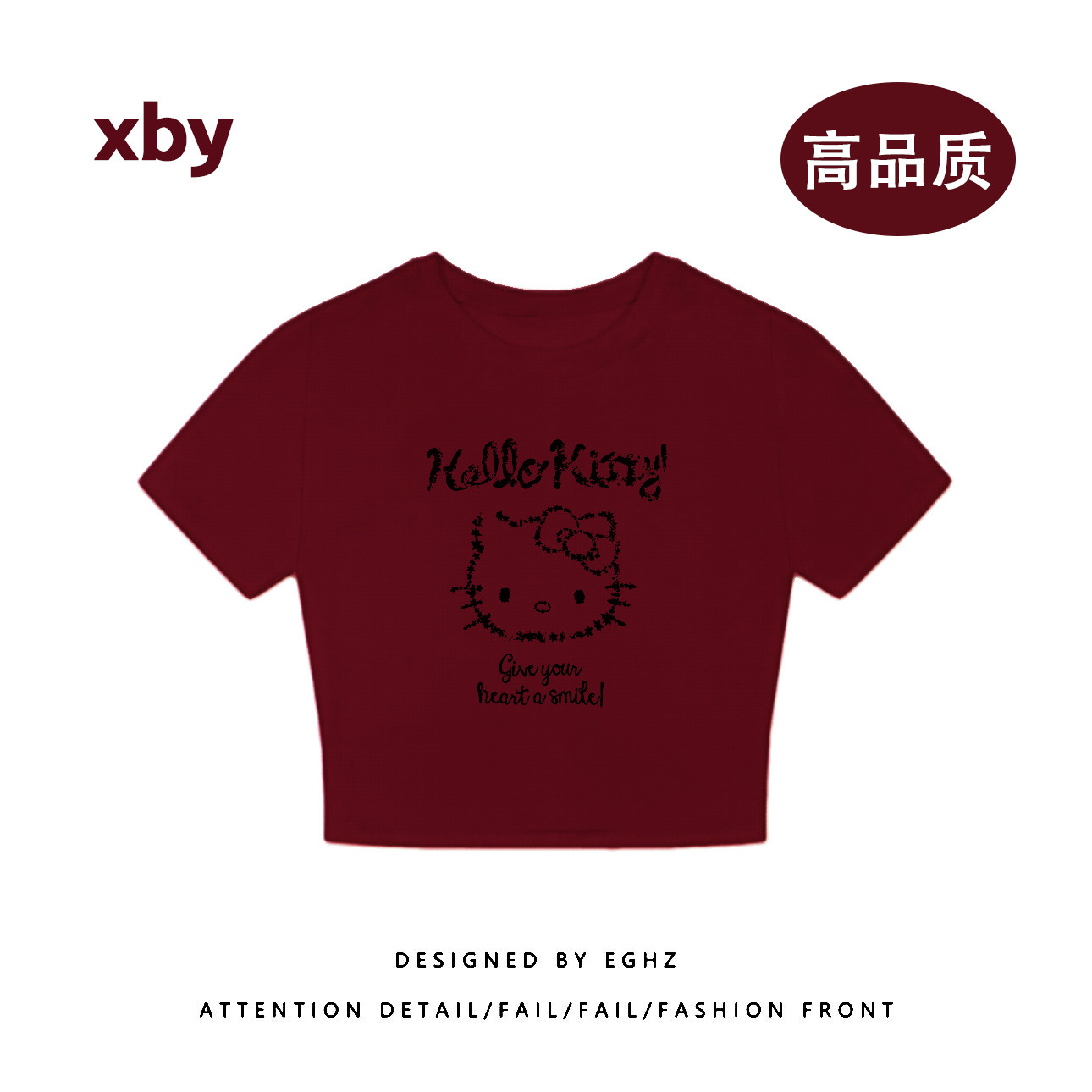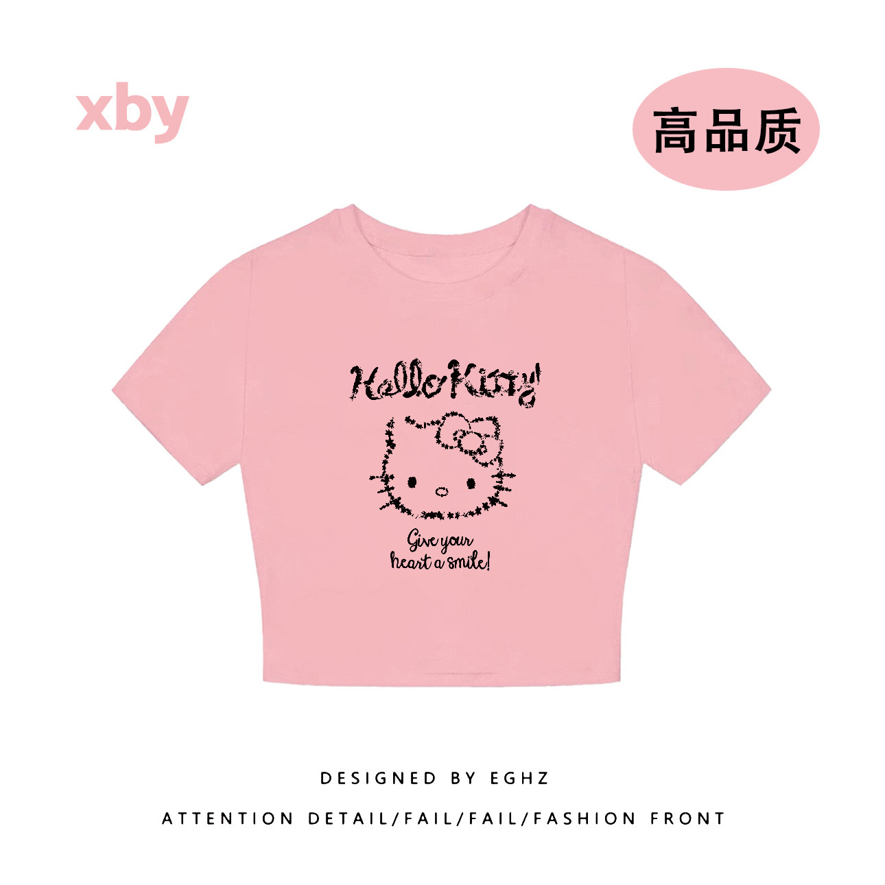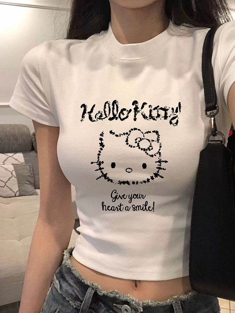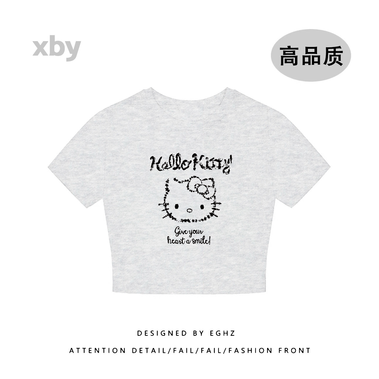 Mèo Kitty in áo sơ mi ngắn tay vai 2026 mùa hè mới slim bông ngắn áo sơ mi