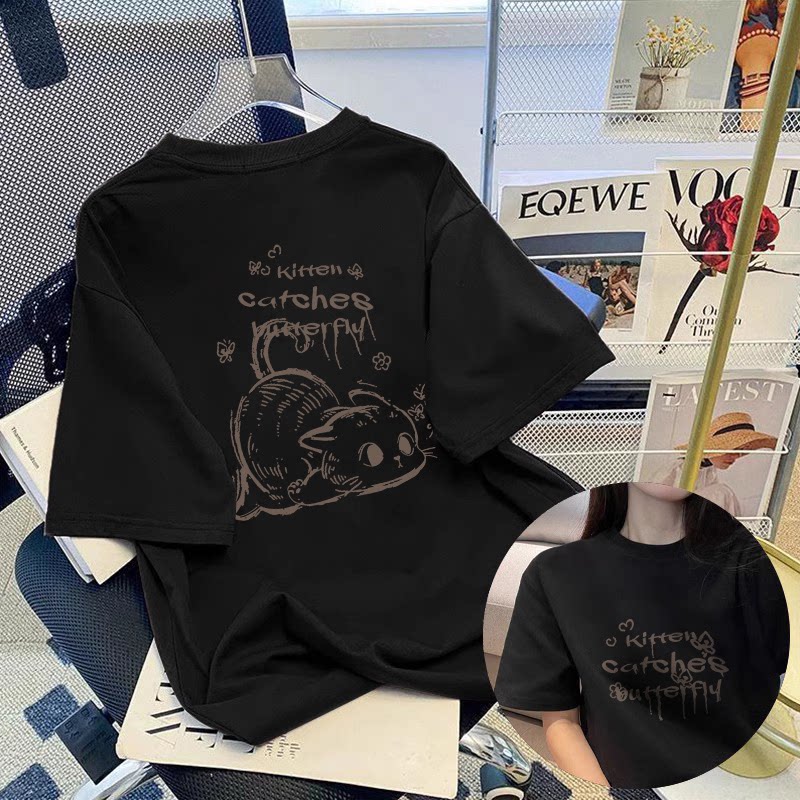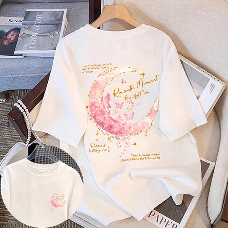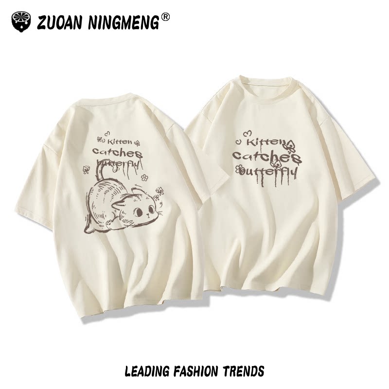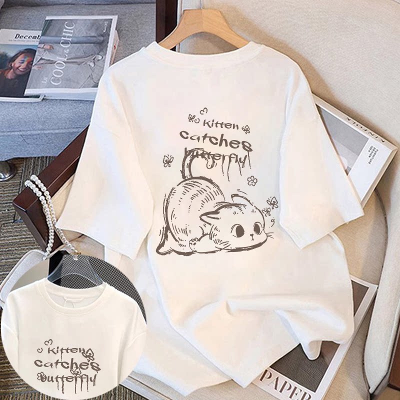 Phim hoạt hình màu trắng ngắn tay t-shirt Nữ mùa hè 2025 bùng nổ mô hình mới mùa hè nửa tay áo rộng thùng thình cộng với kích thước nửa tay áo