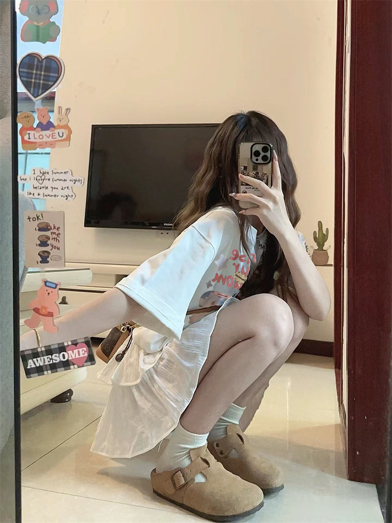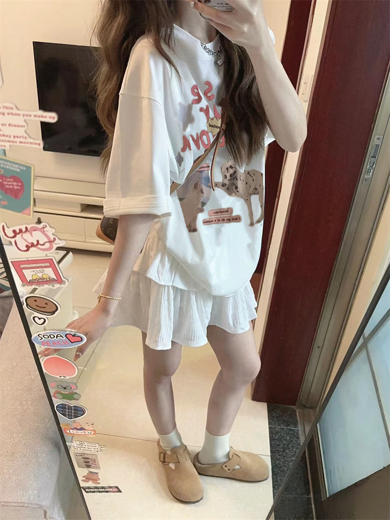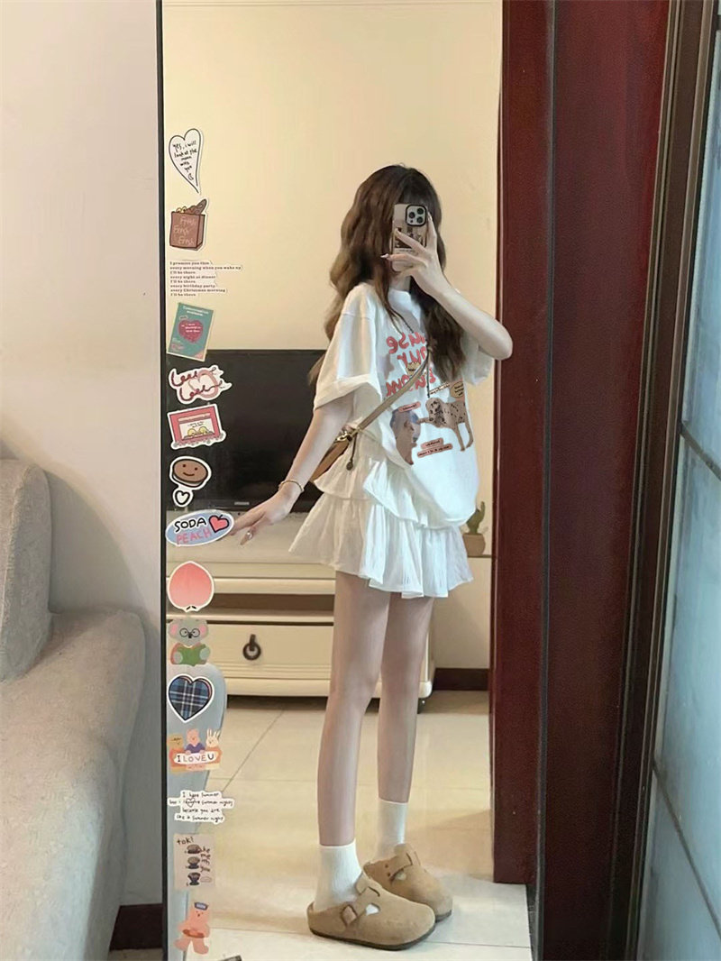 Mùa hè phù hợp với một tập hợp nhỏ chất béo trà mềm mặc giảm tuổi ăn mặc quần áo mùa hè nữ