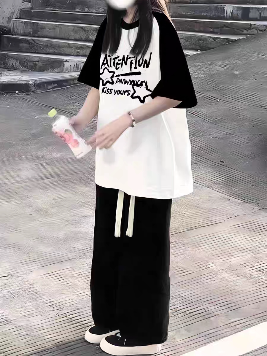 Áo thun ngắn tay áo kiểu mỹ mùa hè năm 2025 nữ sinh viên trung học trung học trung học mở rộng nửa tay áo áo