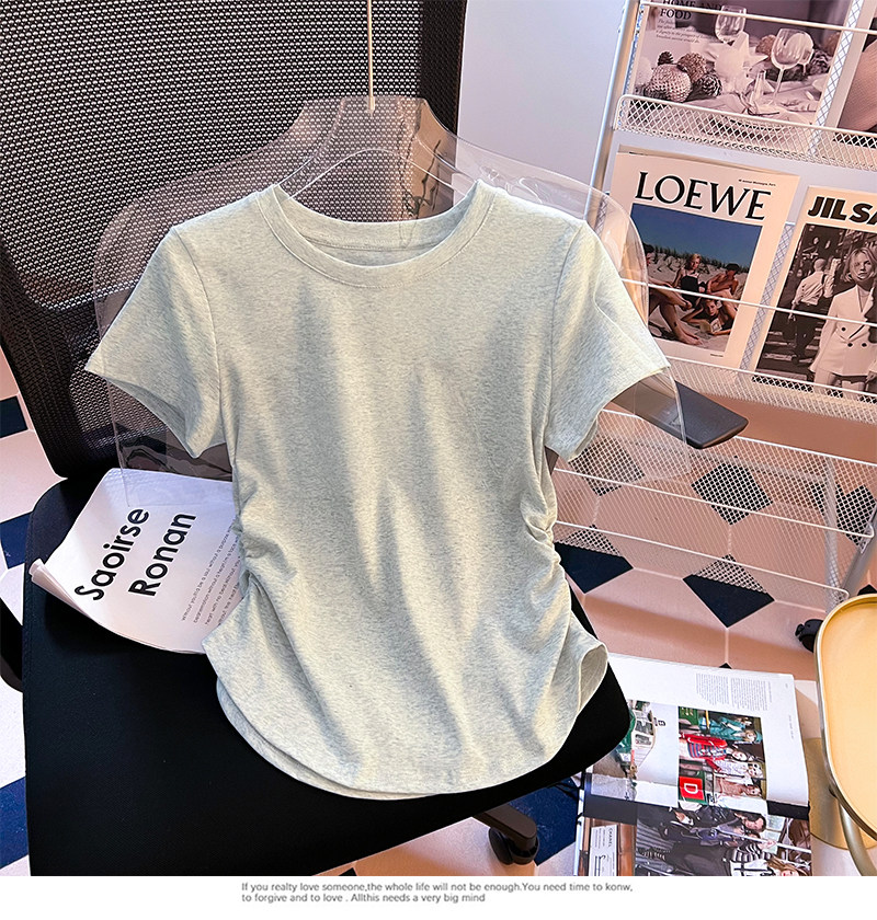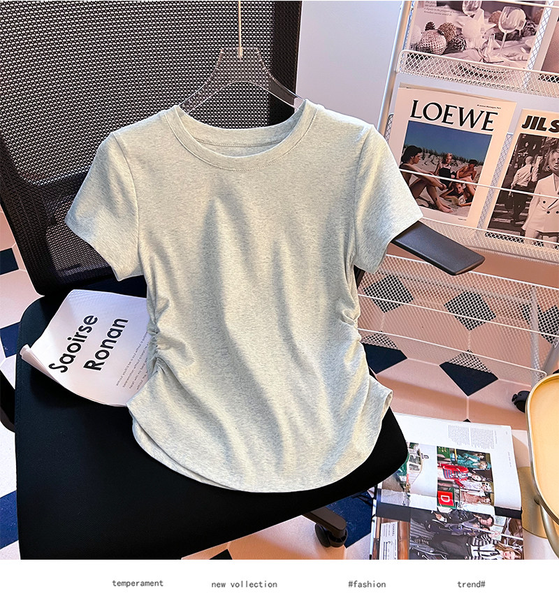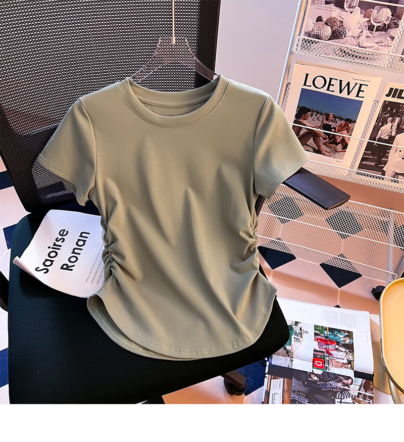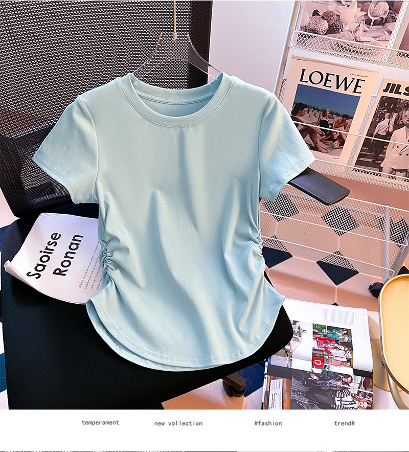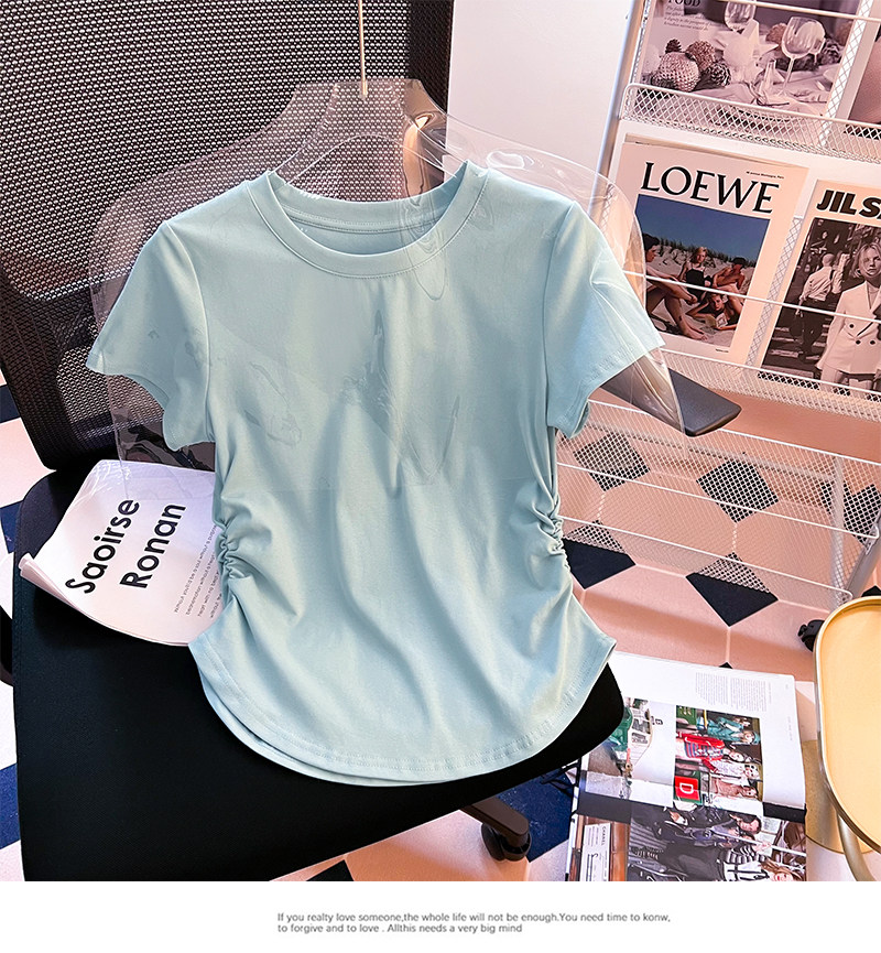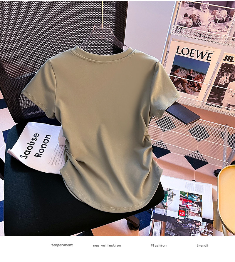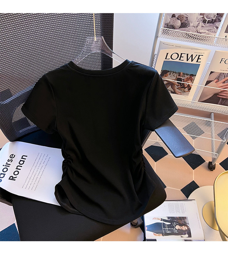 Áo sơ mi gấp bất thường ngắn cổ vai áo sơ mi 2024 ngắn tay áo sơ mi nữ mùa hè thiết kế