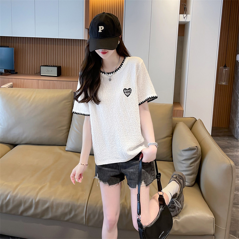 Thiết kế nhỏ bé áo sơ mi ngắn tay nữ mùa hè hàn quốc kích thước rộng lớn của phụ nữ tông màu sắc trên vai quần áo