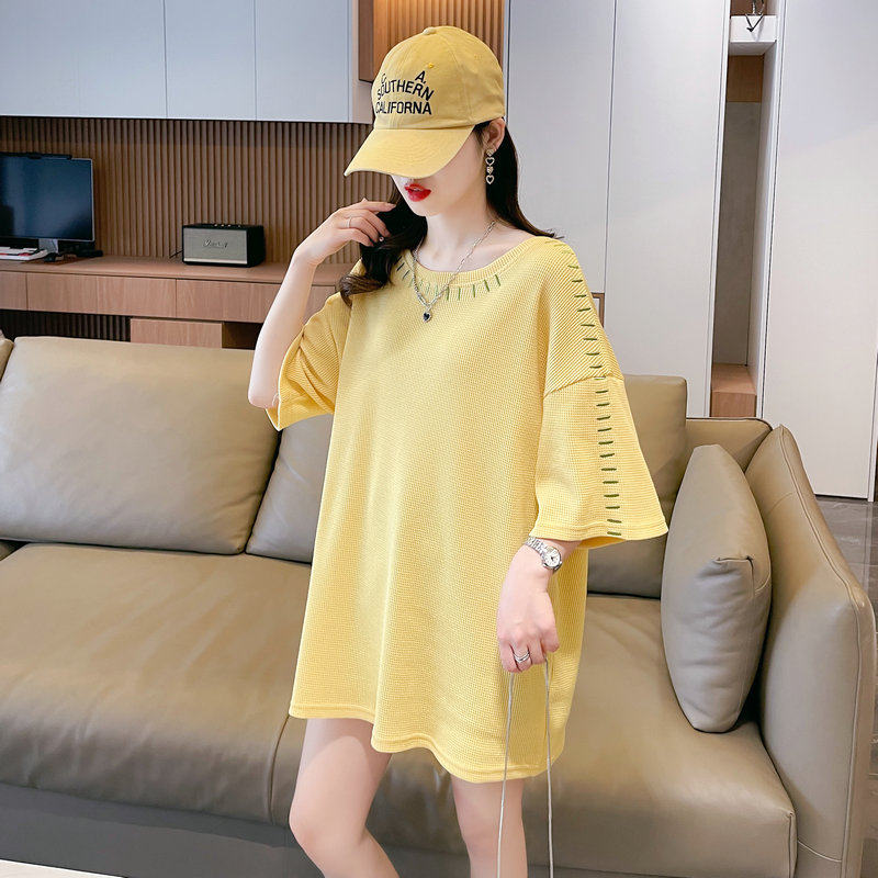 Áo sơ mi waffle ngắn tay quần áo cỡ lớn mùa hè năm 2025 người phụ nữ làn sóng quần áo kiểu hàn quốc