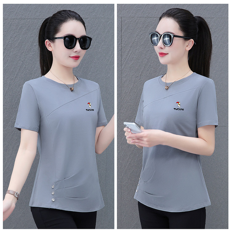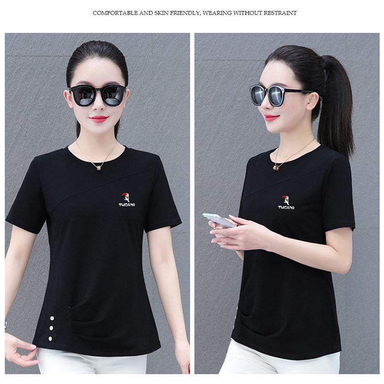 Áo thun ngắn tay của phụ nữ bằng gỗ gõ kiến mùa hè năm 2025