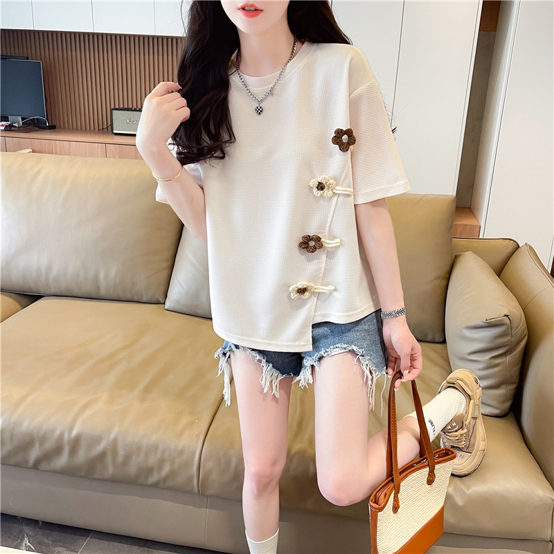Kích thước lớn của phụ nữ ăn mặc không đều ngắn tay áo t-shirt cho phụ nữ mùa hè 2025 phong cách mới lỏng lẻo người đàn ông nhỏ thiết kế cảm giác đầu
