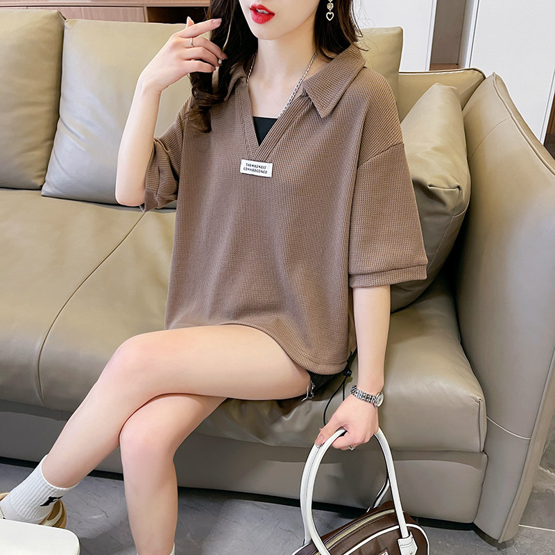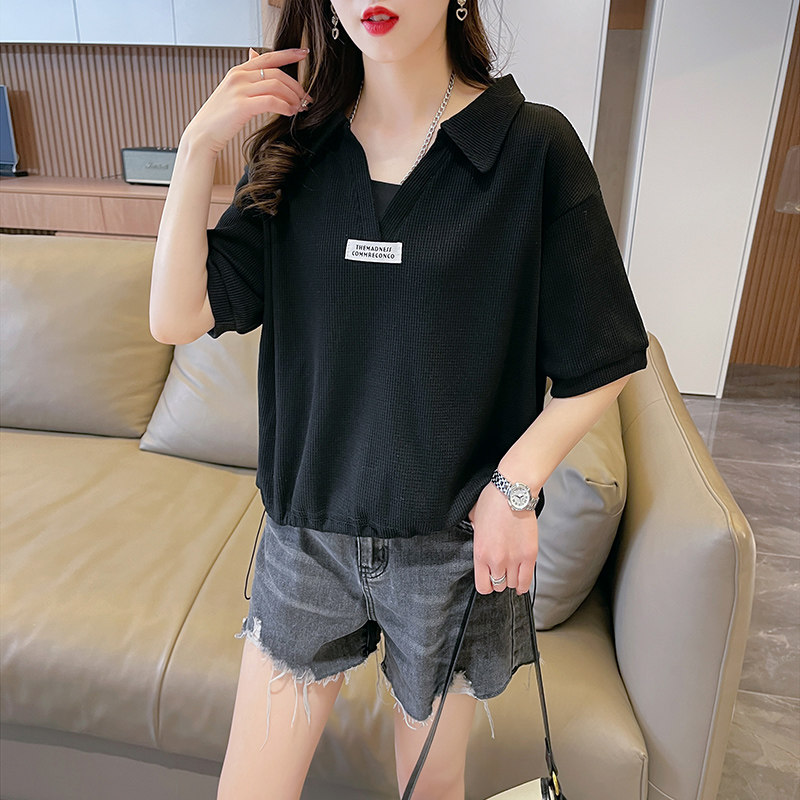 polo cổ giả hai áo thun ngắn tay cho phụ nữ mùa hè 2025 phong cách mới lỏng lẻo Hàn Quốc 100 phù hợp với người đàn ông nhỏ