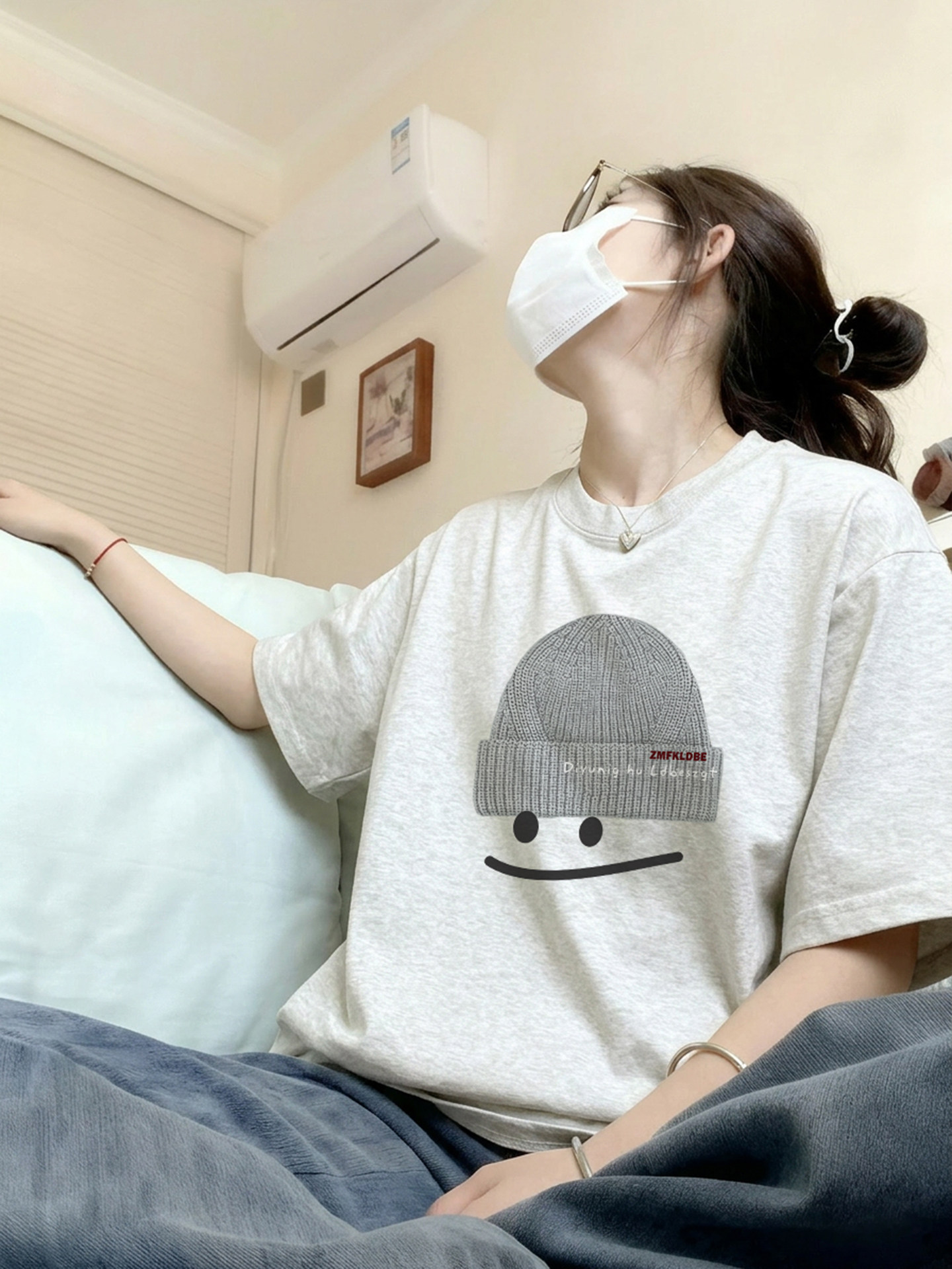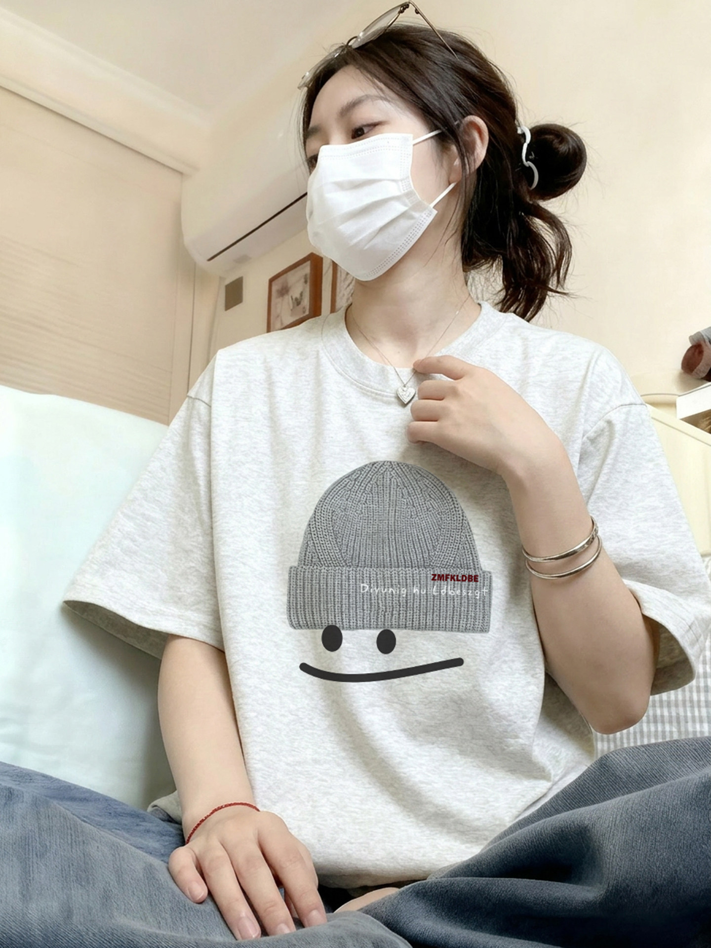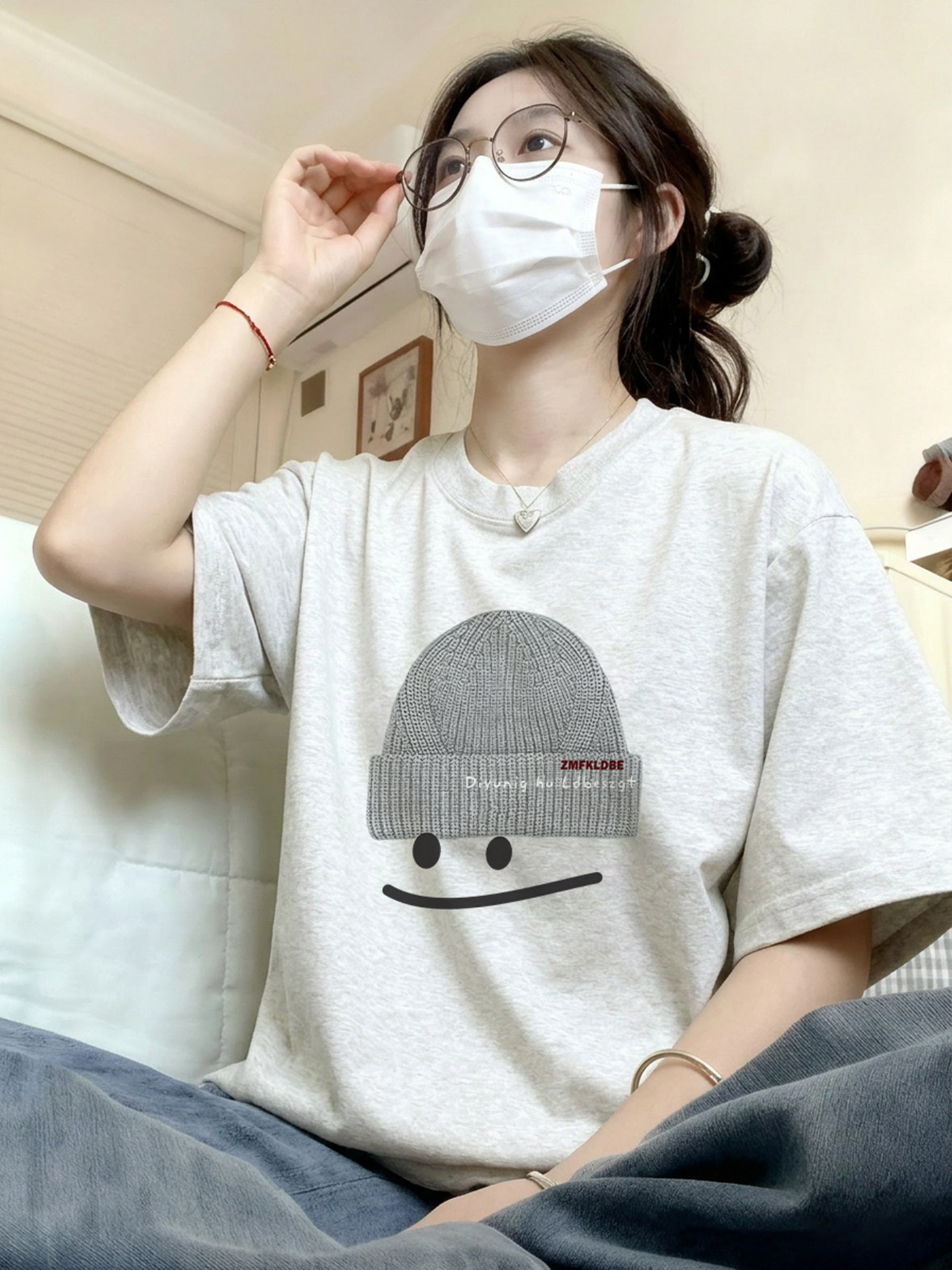 Bông trắng xám ngắn tay áo sơ mi 2026 mùa hè mới nổ thiết kế lỏng lẻo và lười biếng một nửa tay áo áo