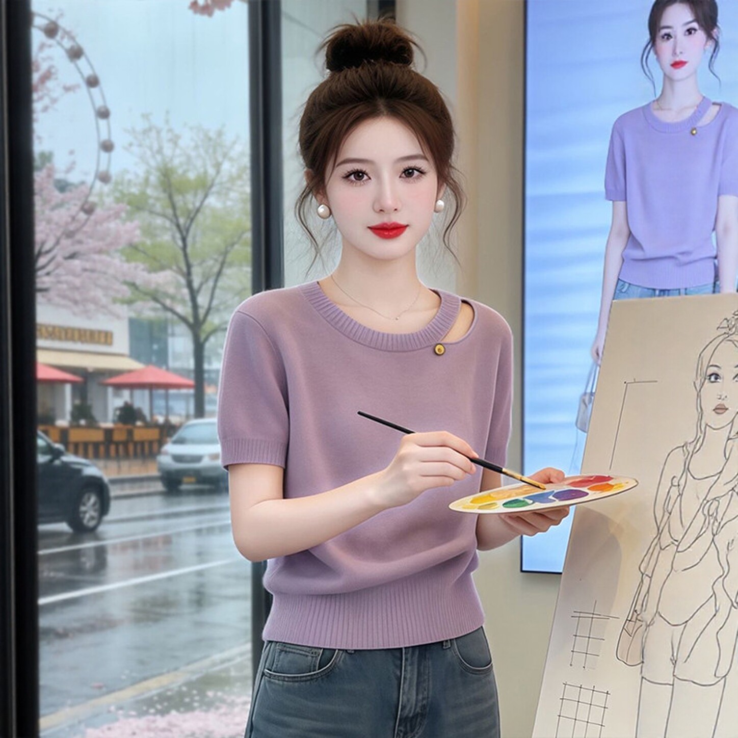 Thời trang hàn quốc stench cổ áo may tóc màu tím ngắn tay áo cô gái mùa xuân và mùa hè mới mềm mỏng áo khoác
