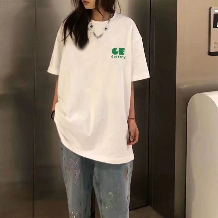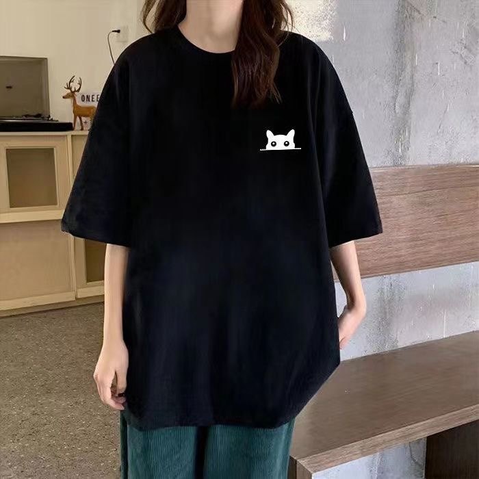 Áo thun ngắn tay cho phụ nữ mùa hè mẫu mới cộng với kích thước của phụ nữ Hàn Quốc rộng thùng thình vừa dài ins thủy triều đơn giản trăm phù hợp với một nửa tay áo