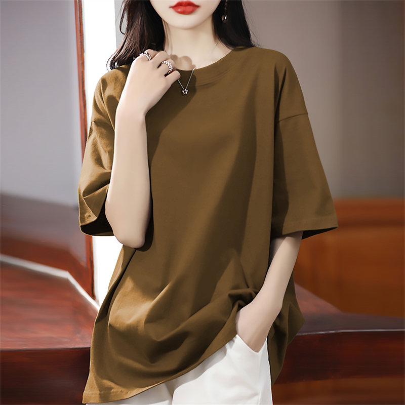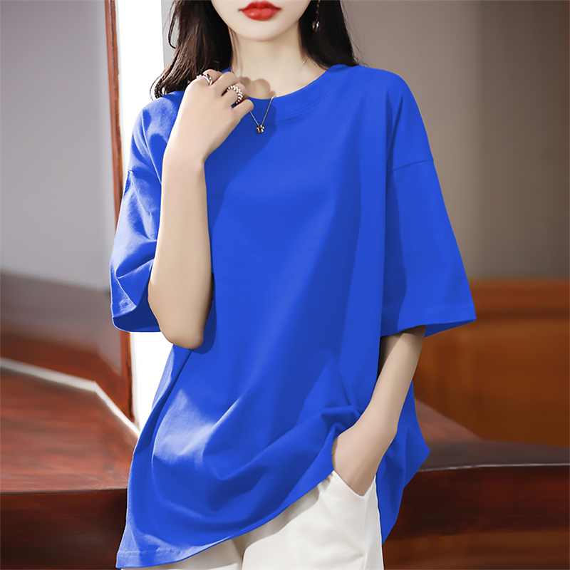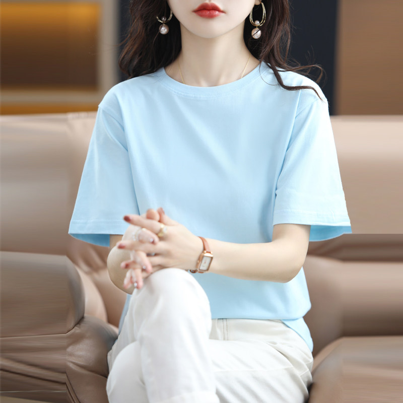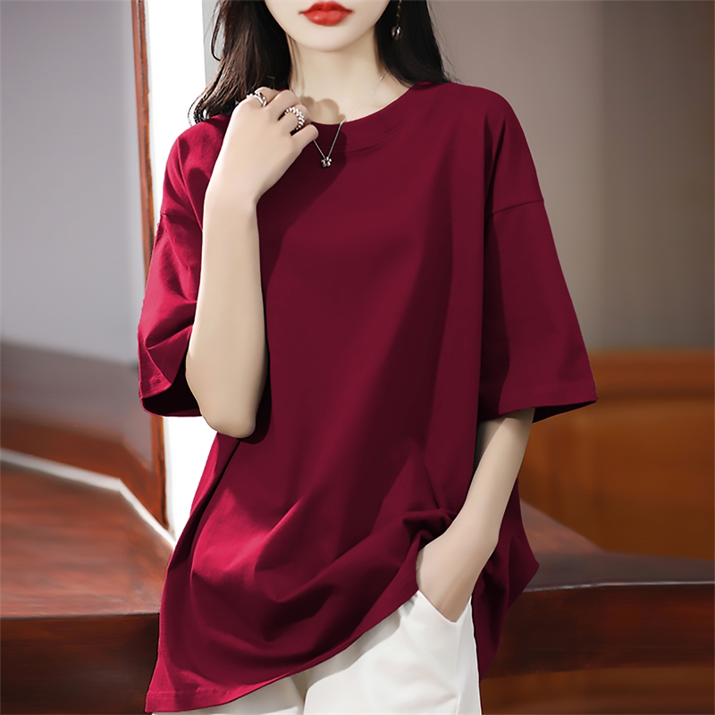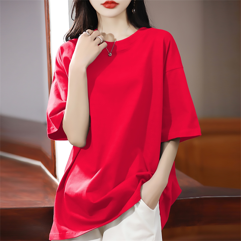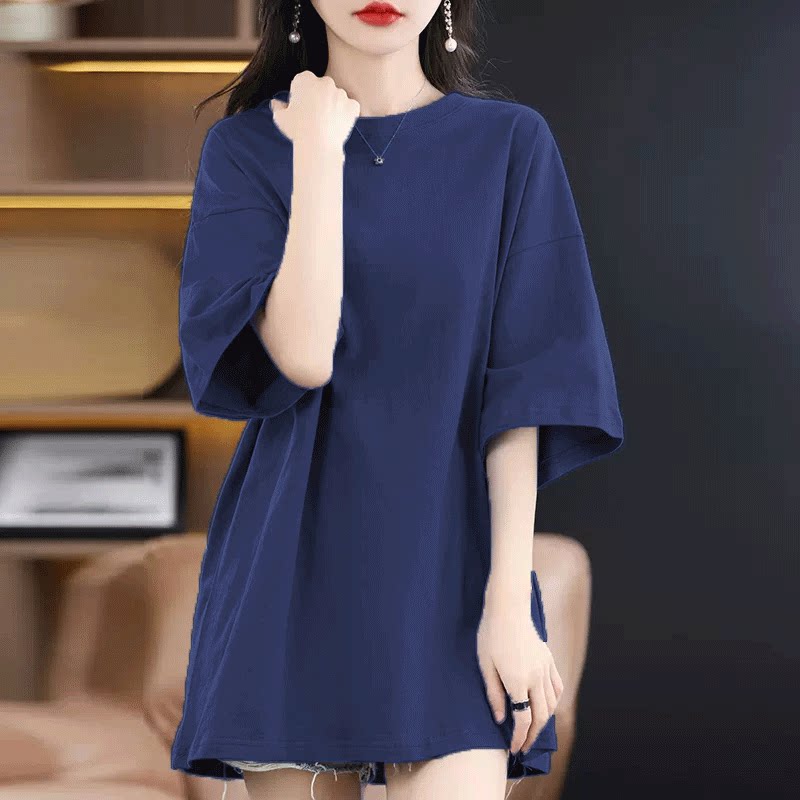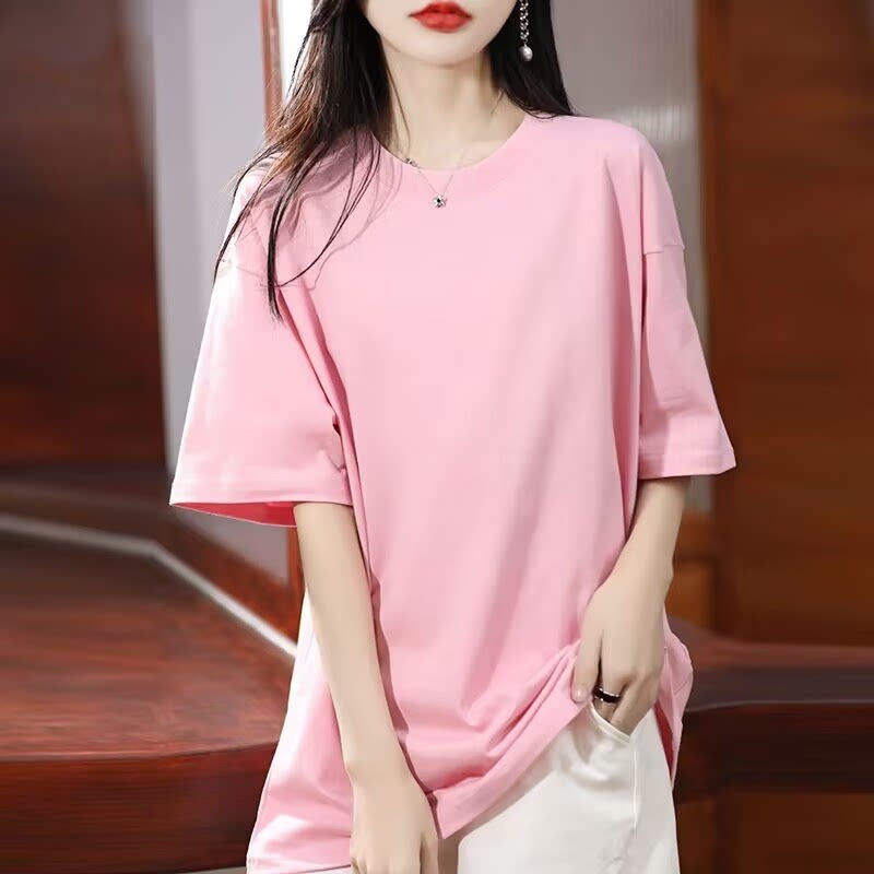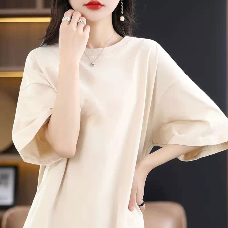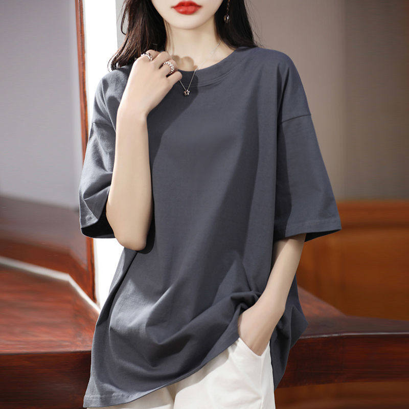 Áo thun ngắn tay nữ cotton mùa hè lỏng lẻo hiển thị gầy Hàn Quốc phiên bản dài trung bình Bách đáp che mông nửa tay áo T-Shirt Top