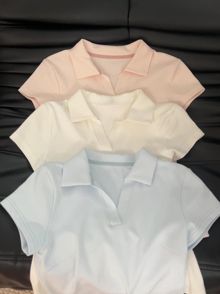 Áo sơ mi màu xanh bông vai phải áo sơ mi ngắn tay mùa hè năm 2025