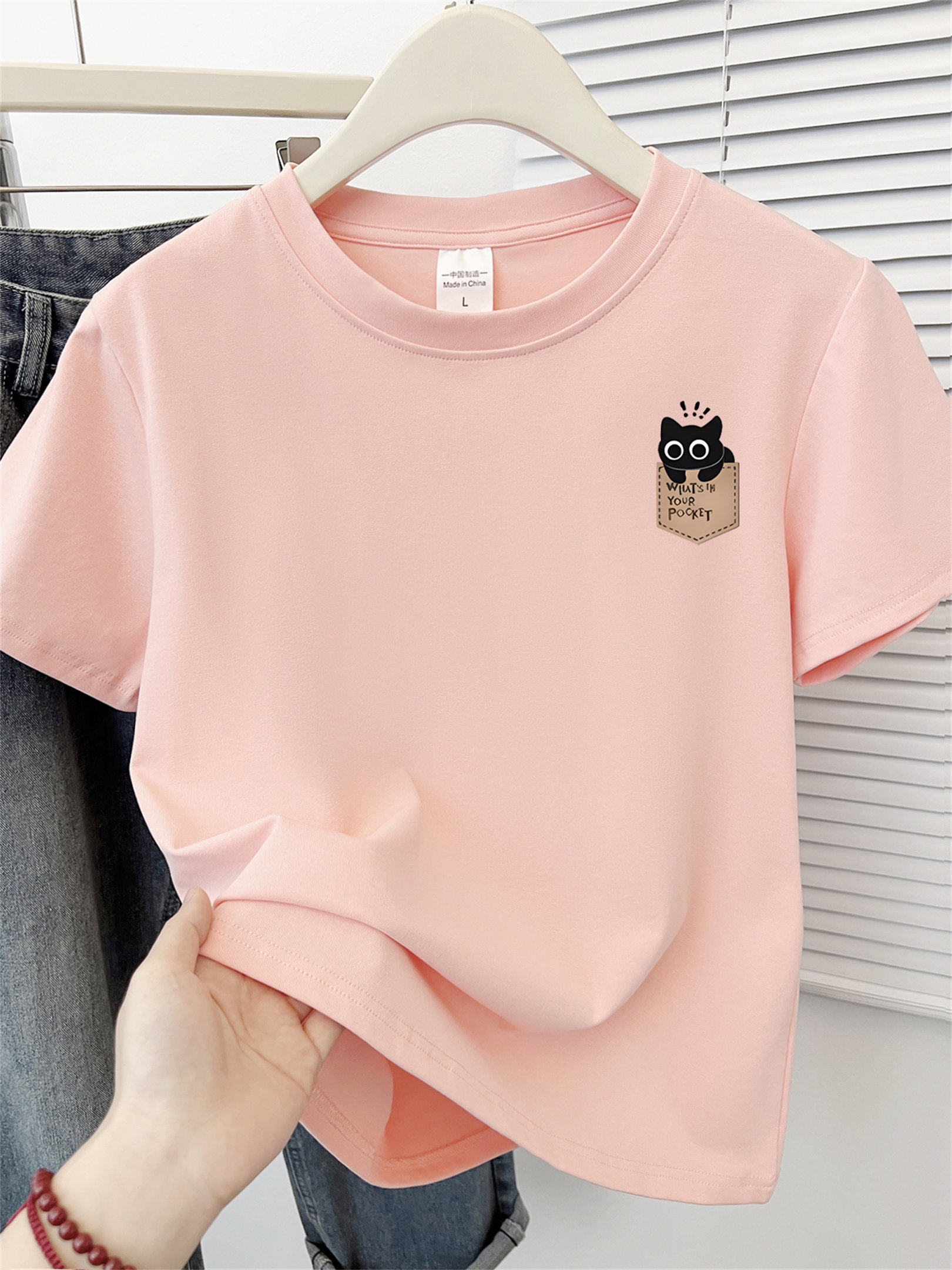 Mùa hè năm 2025 mới dễ thương mèo in vai áo sơ mi ngắn tay thiết kế nữ hàn quốc cổ áo vòng tay áo