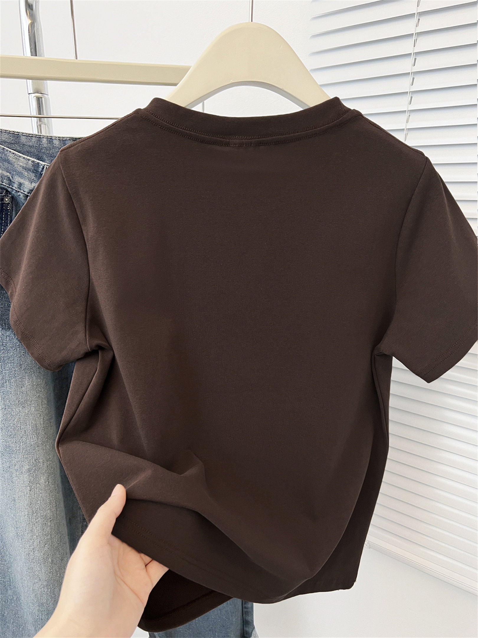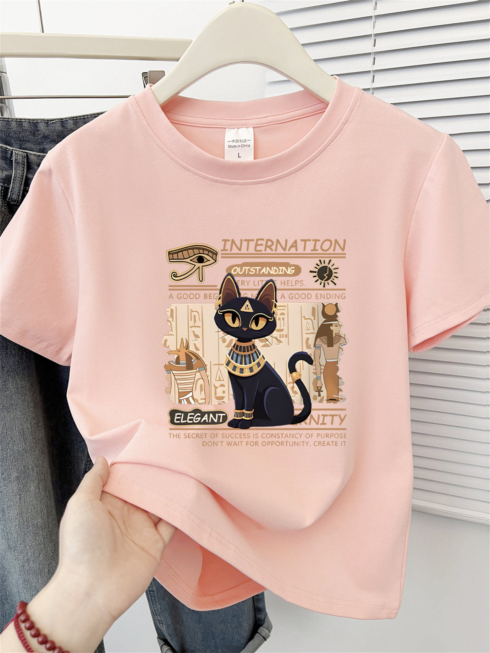Sáng tạo mèo in mùa hè năm 2025 áo thun vòng cổ cổ ngắn tay áo nhỏ hàn quốc hàng loạt áo khoác trong làn sóng