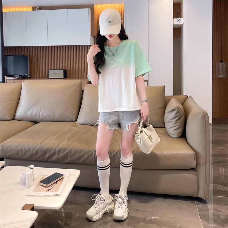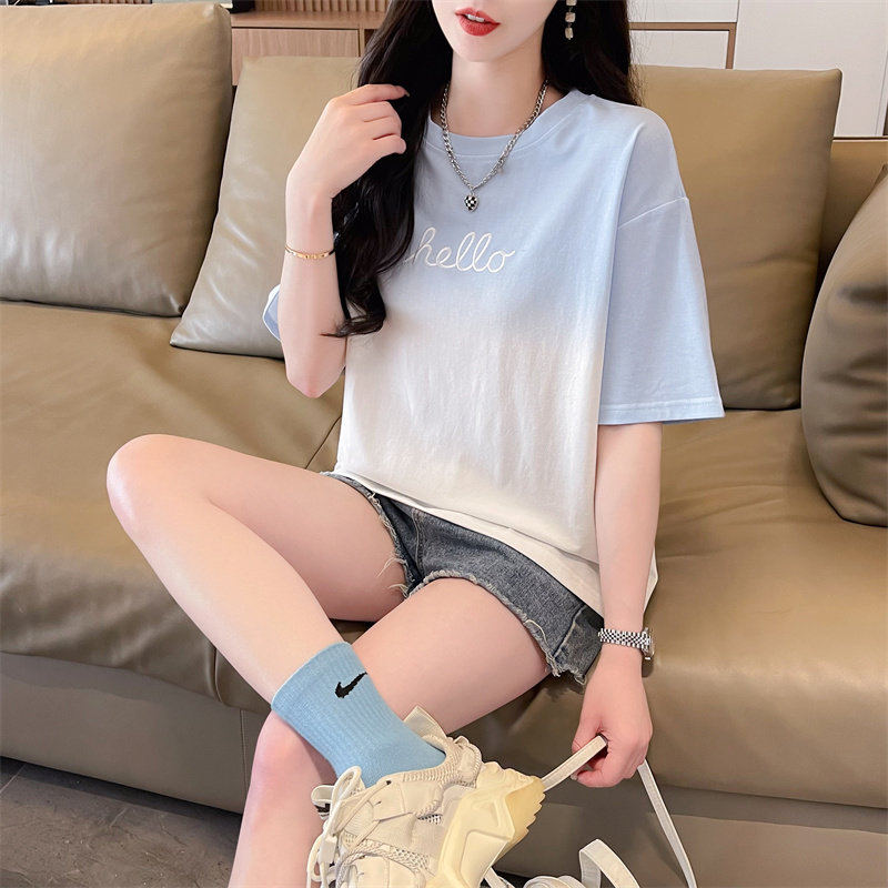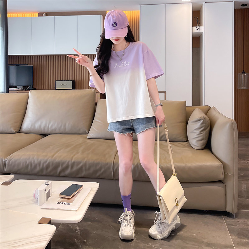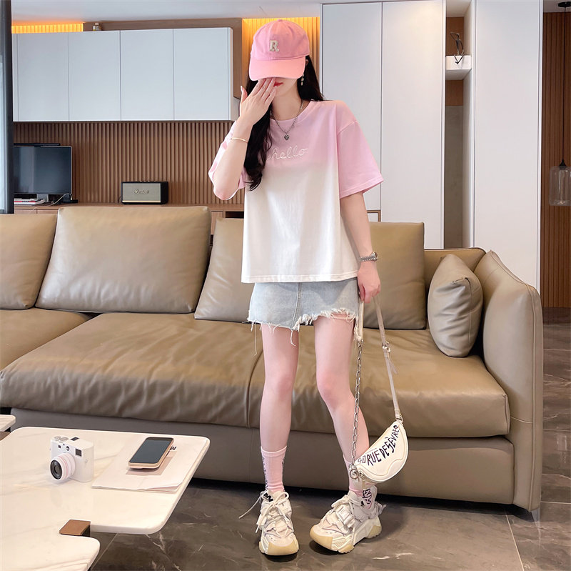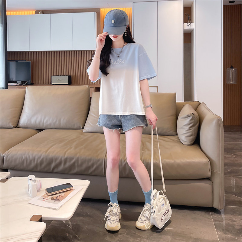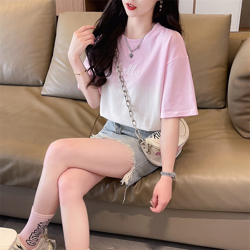 Những người phụ nữ mang Thai nhỏ dần thay đổi màu áo sơ mi ngắn tay mùa hè cô gái thêu cổ ngắn áo sơ mi cao cấp lỏng lẻo