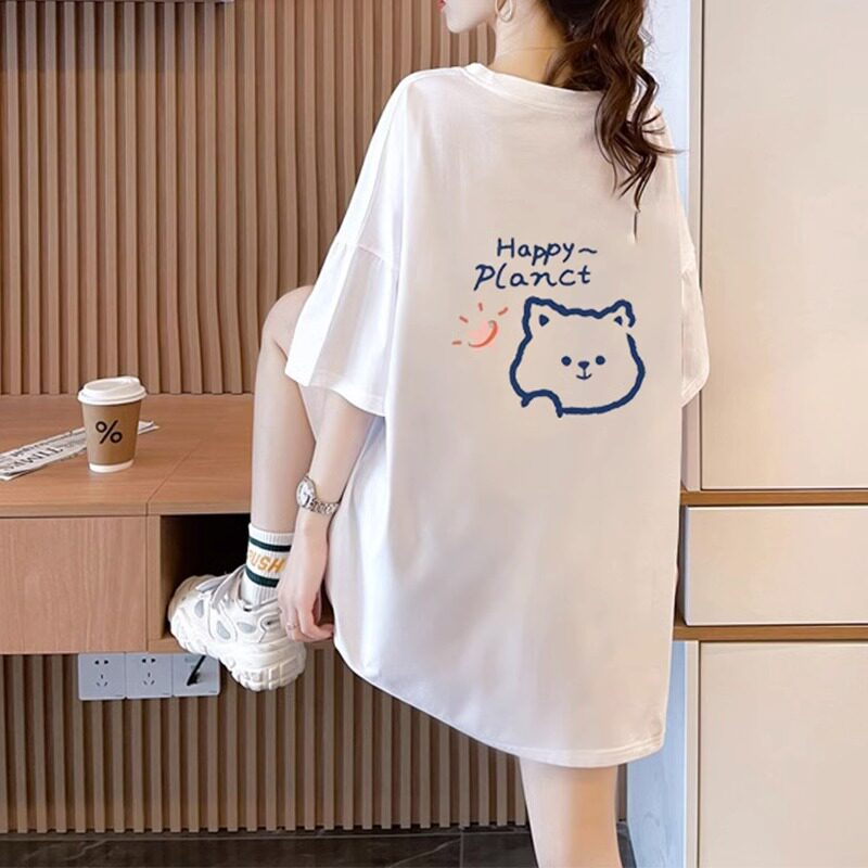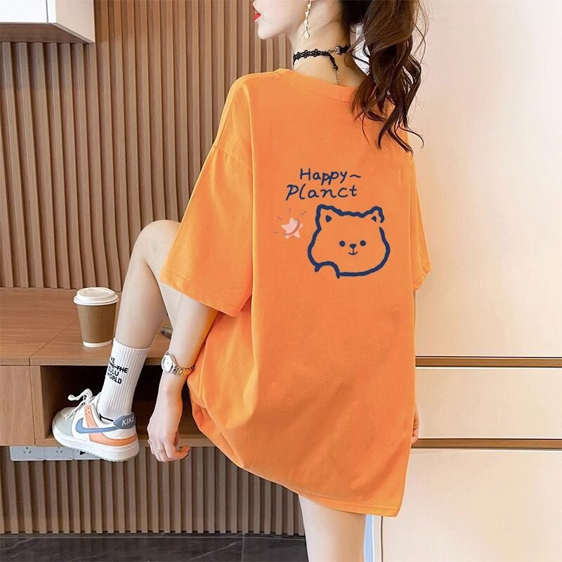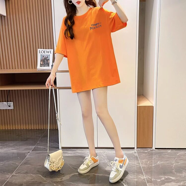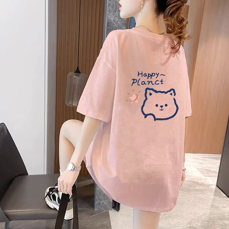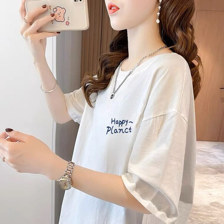 Mùa hè người phụ nữ bông trung bình áo thun dài ngắn tay áo hàn quốc giảm tuổi thiết kế áo thun