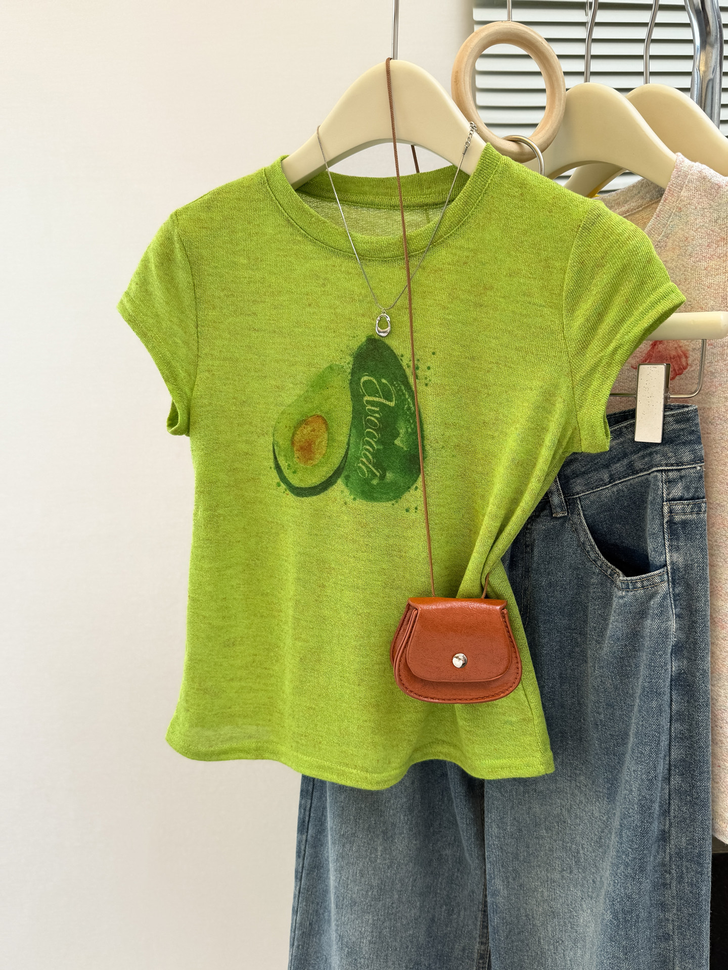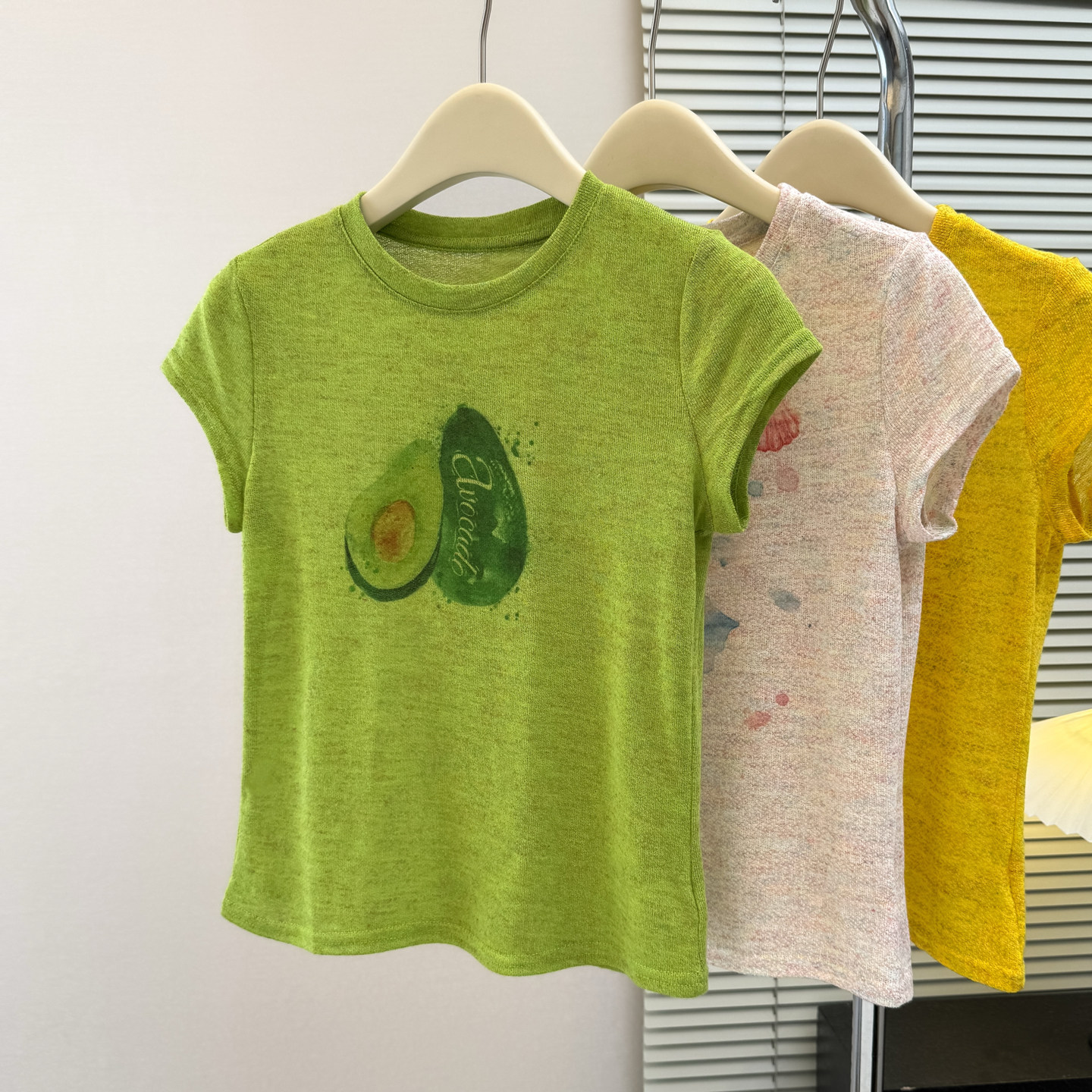 Màu vàng in băng đan ngắn áo thun nữ mùa hè mỏng cao cấp cảm giác dopamine mặc áo sơ mi ngắn