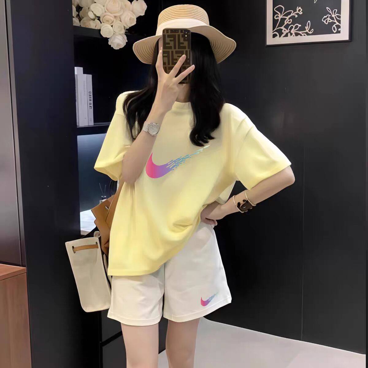 Otellas bông giải trí nữ mùa hè mới rộng, mỏng, ngắn tay quần short thời trang hai mảnh quần short thời trang mùa hè