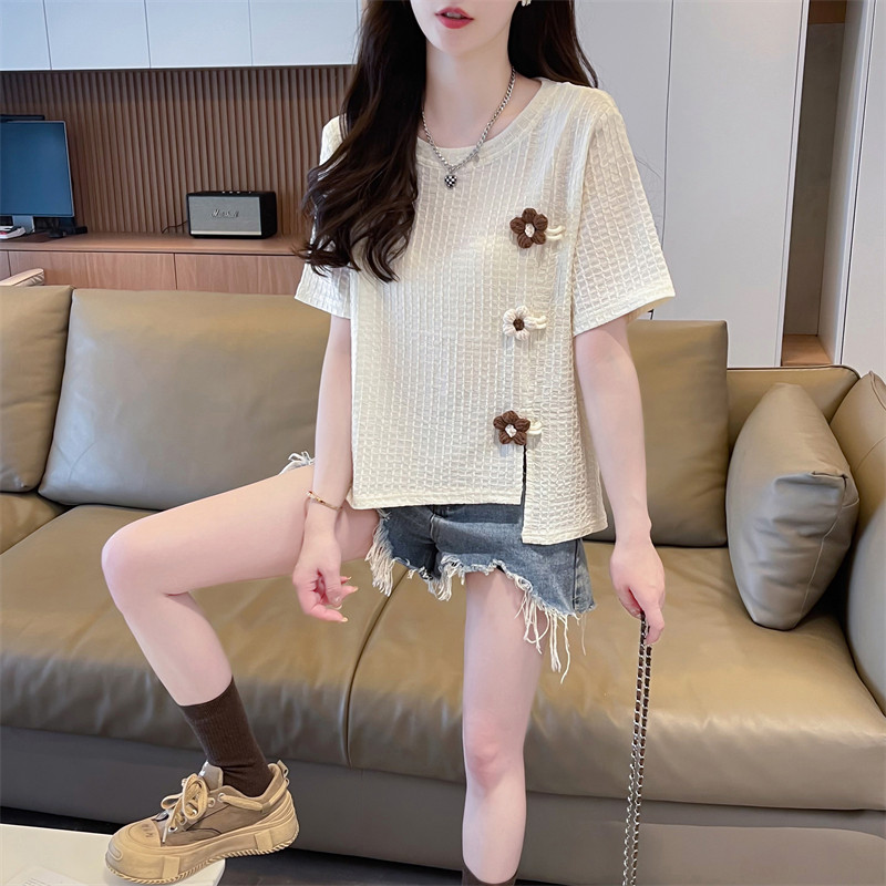 Áo thun ngắn tay không đều cho nữ 2025 Thiết kế mới mùa hè Hàn Quốc rộng rãi