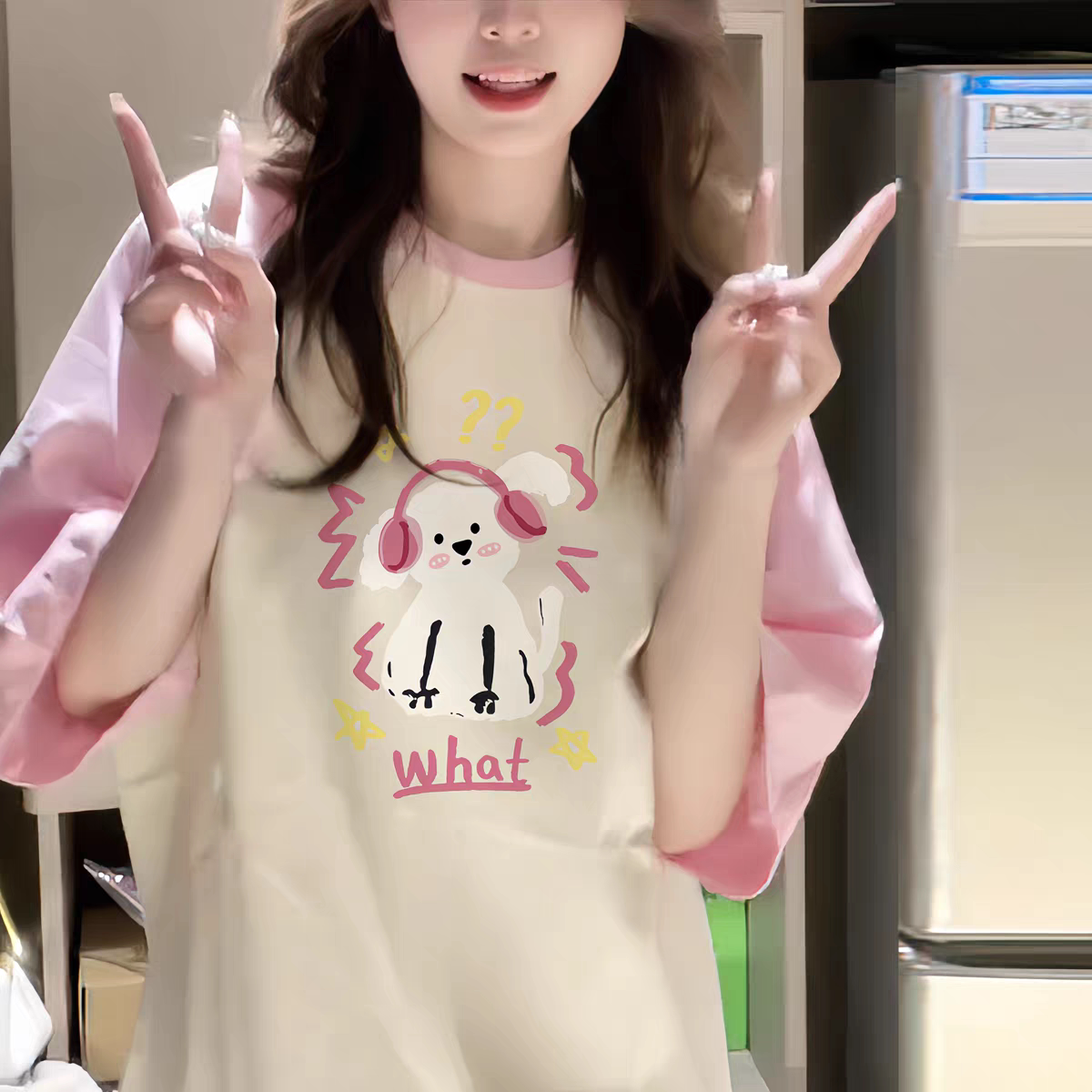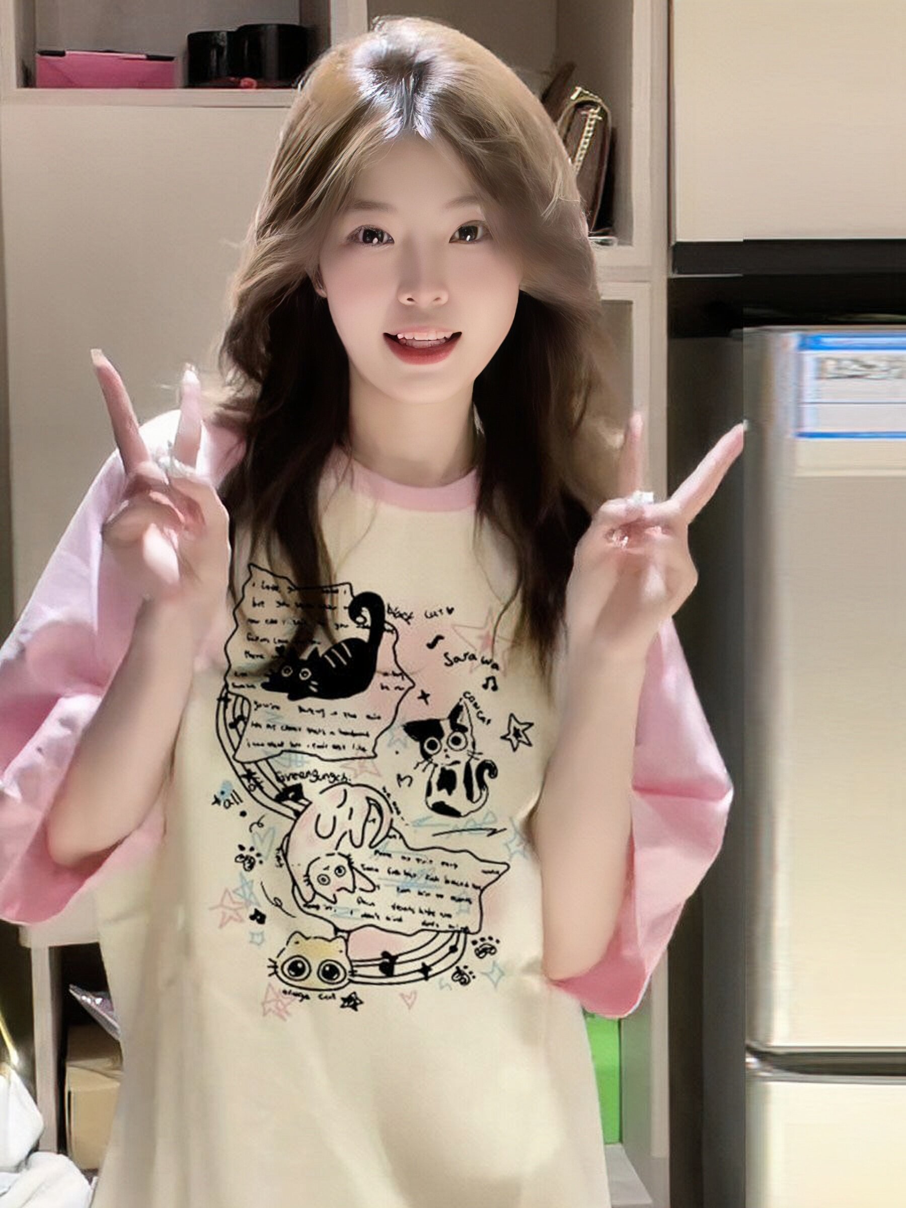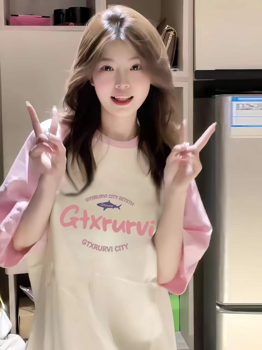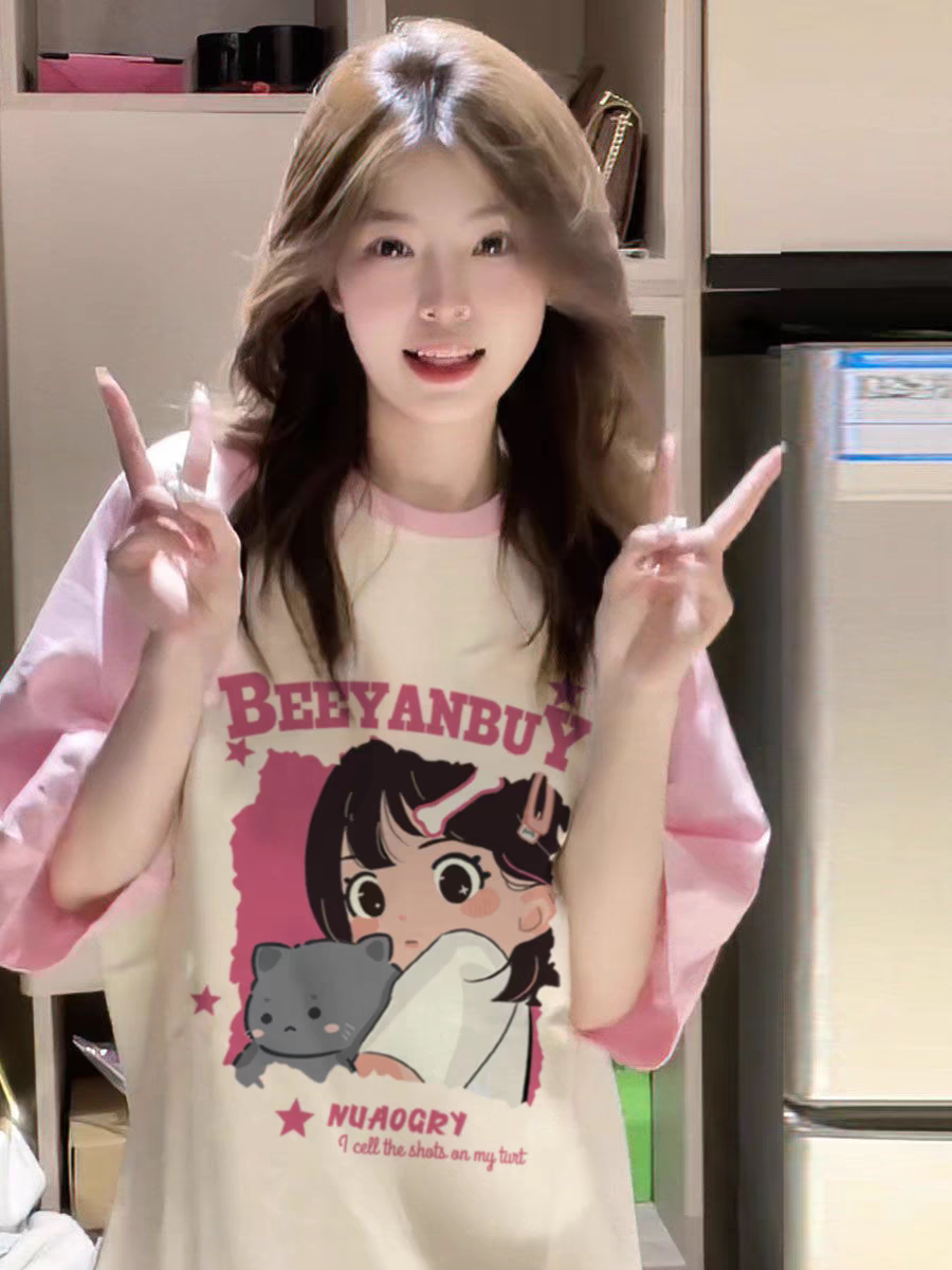 Mùa hè mặc áo sơ mi hồng vai ngắn tay áo áo sơ mi của nữ sinh viên trung học trung học trung học trung học sinh viên trung học trung học sơ sài bông nửa tay áo áo