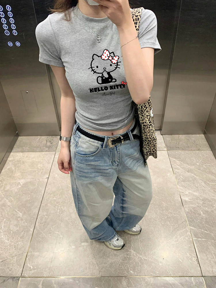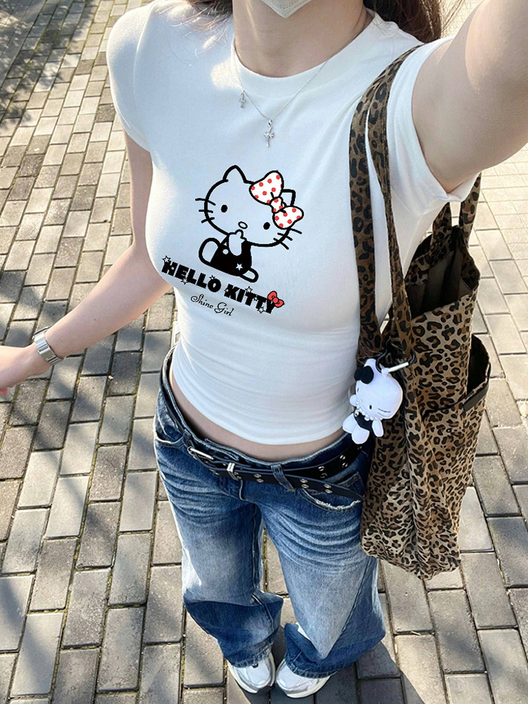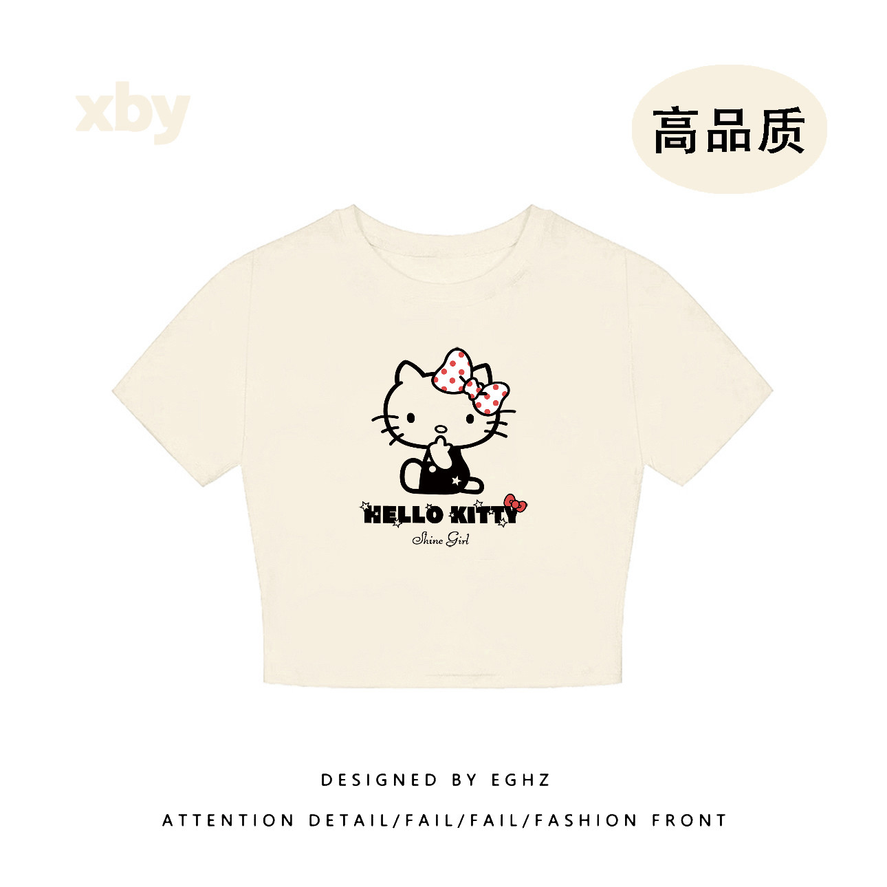 Xin chào người mỹ nóng bỏng hello Kitty áo sơ mi ngắn tay 2026 mùa hè mới slim ngắn áo khoác