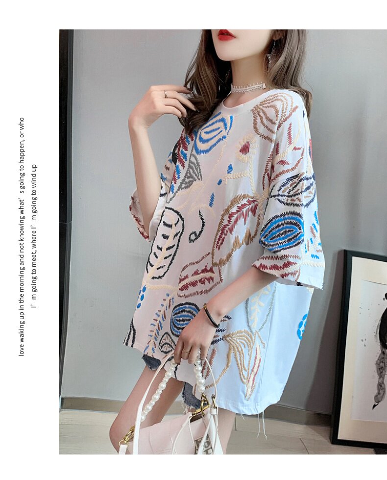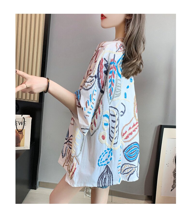 Kích thước lớn của phụ nữ Trung Quốc phong cách cotton ngắn tay áo t-shirt cho phụ nữ mùa hè 2025 phong cách mới lỏng lẻo chất béo mm hiển thị gầy bụng che T