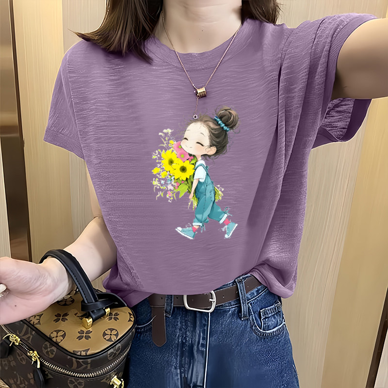 Tre bông trắng phụ nữ áo sơ mi ngắn tay mùa hè năm 2025 bùng nổ lười biếng gió thoải mái rất mỏng và đẹp T-shirt