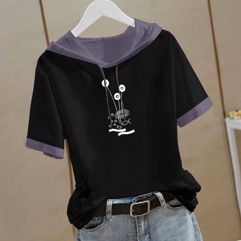 Thời trang đội mũ áo sơ mi tay áo ngắn mùa hè năm 2025 người phụ nữ mới bông mỏng khâu nửa tay áo áo sơ mi thời trang áo sơ mi