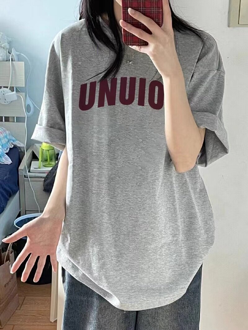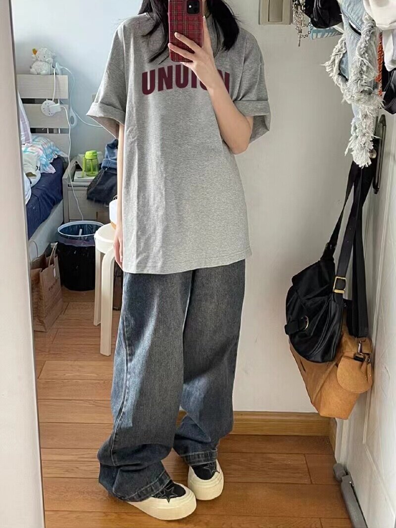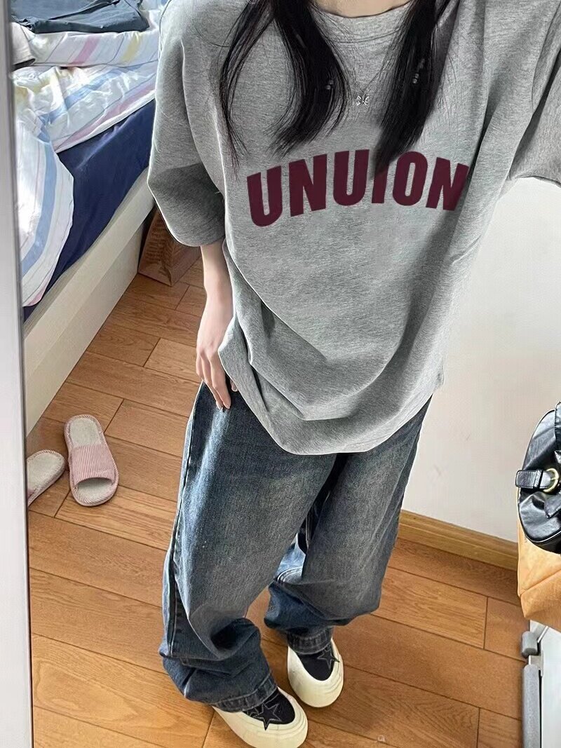 American High Street xám ngắn tay nặng cân bông T-shirt cho phụ nữ 2025 mùa hè mới lỏng lẻo phiên bản Hàn Quốc nửa tay áo