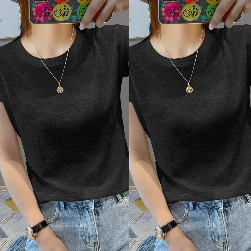 Mùa hè năm 2025 mới mát mẻ lạnh áo thun áo thun thời trang của phụ nữ bằng tre bông 1/4 inch sleeve wrench áo sơ mi
