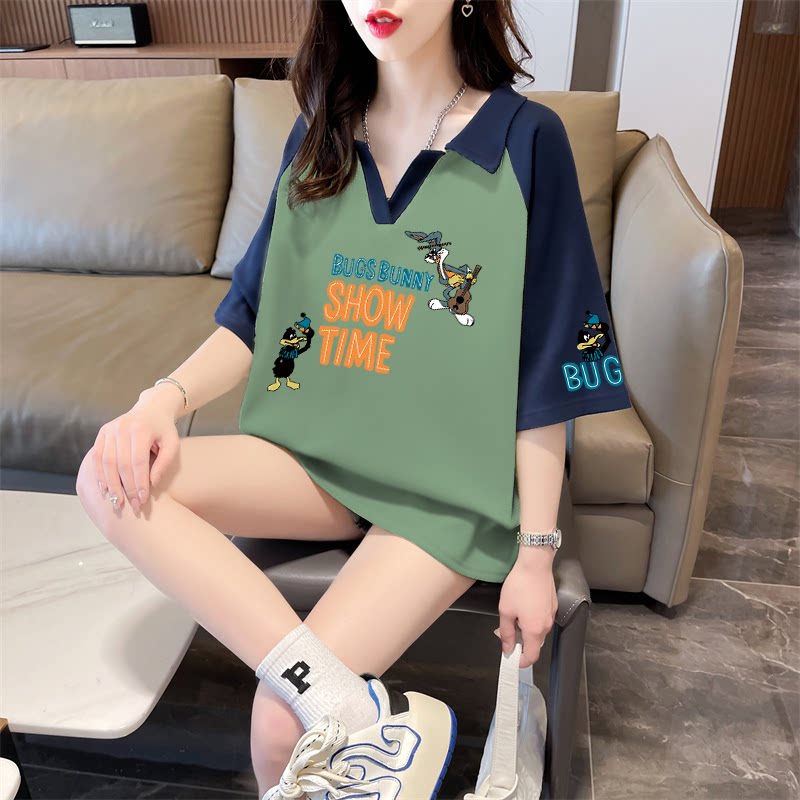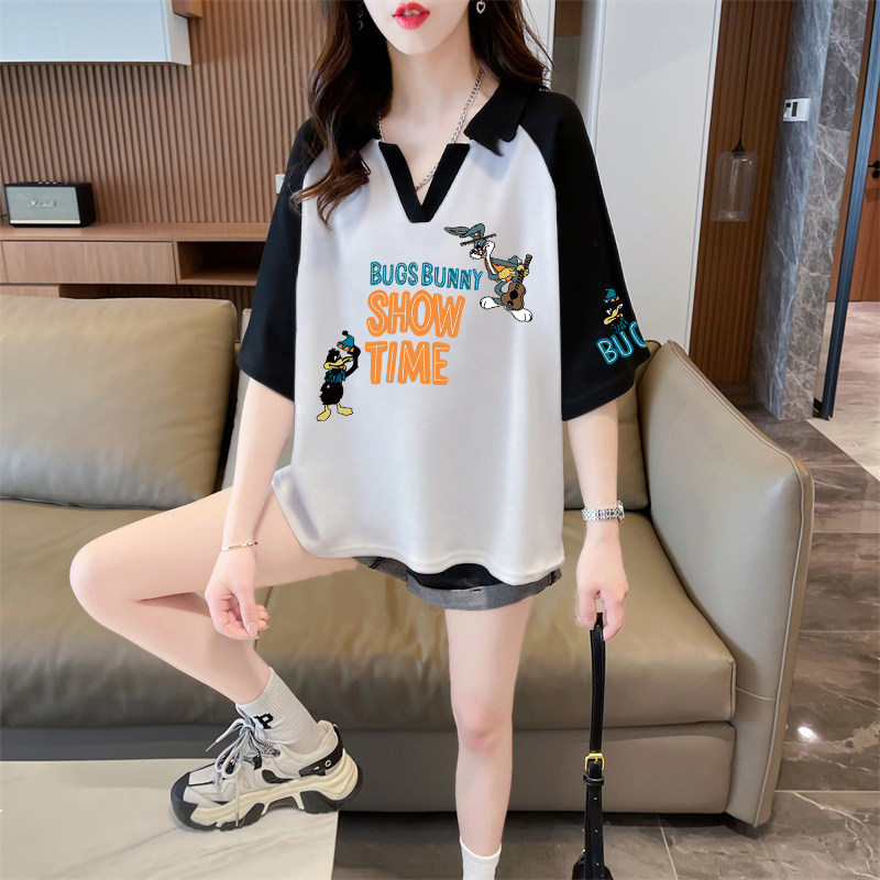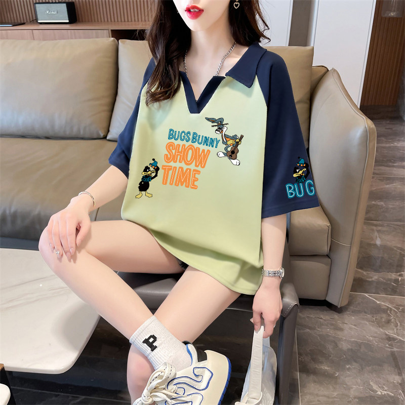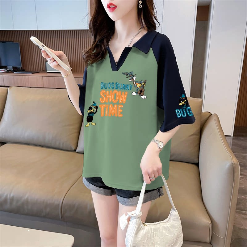 Áo thun bông Polo áo sơ mi ngắn tay mùa hè năm 2025 người phụ nữ béo mũm mĩm màu V cổ áo sơ mi mùa hè mới